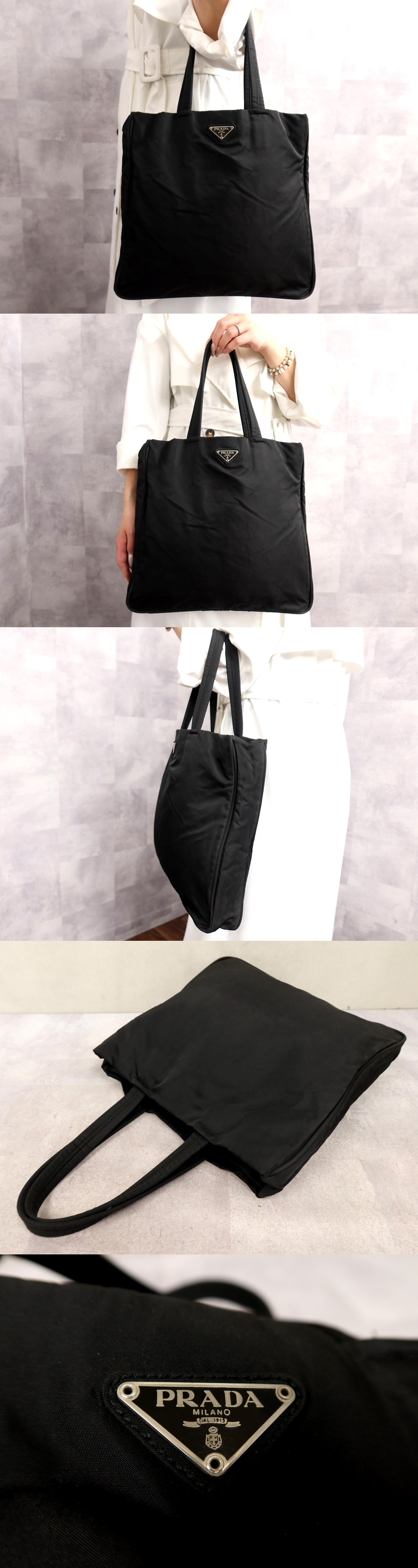 Product name: ●超美品●PRADA プラダ●三角ロゴプレート●ポコノ ナイロン●トート バッグ●黒●シルバー金具●腕掛け●イタリア製●A4 かばん●Js66894