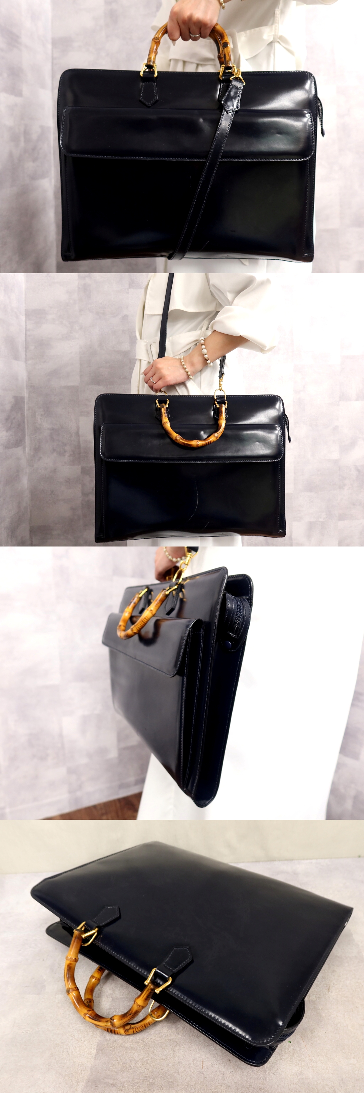 Store ●美品●GUCCI グッチ●バンブー●エナメル パテント レザー 本革●2way ビジネス バッグ●ネイビー●ゴールド金具●A4 書類 収納●Js67119