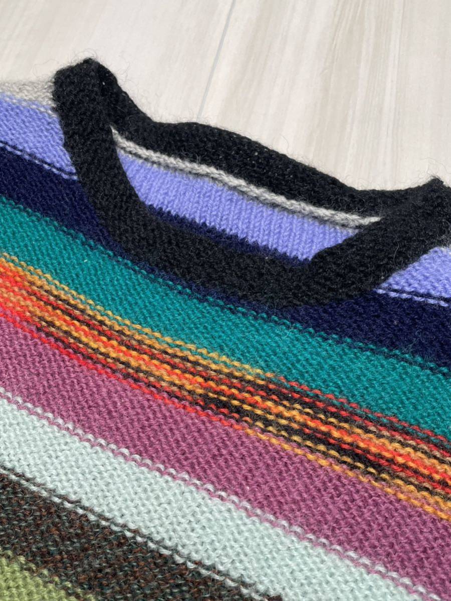 レディース マルチボーダー柄 セーター チュニック 約9号 ハンドメイド 手編み ニット