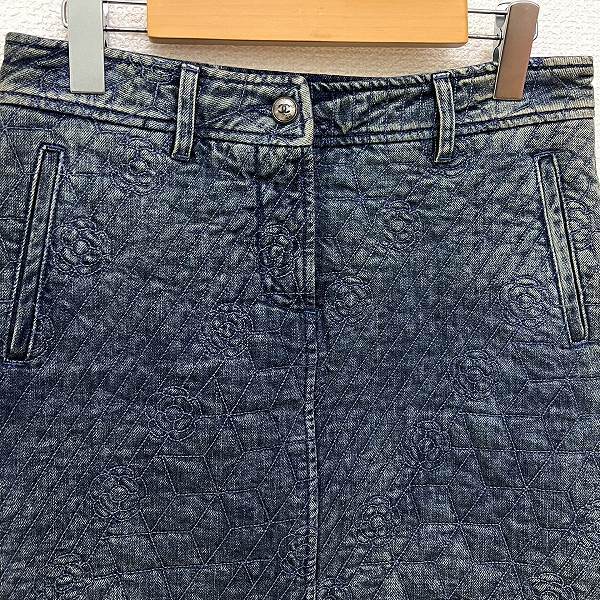 Product name: #apc シャネル CHANEL スカート 36 青系 カメリア デニム キルティング シルク混 イタリア製 レディース [907788]