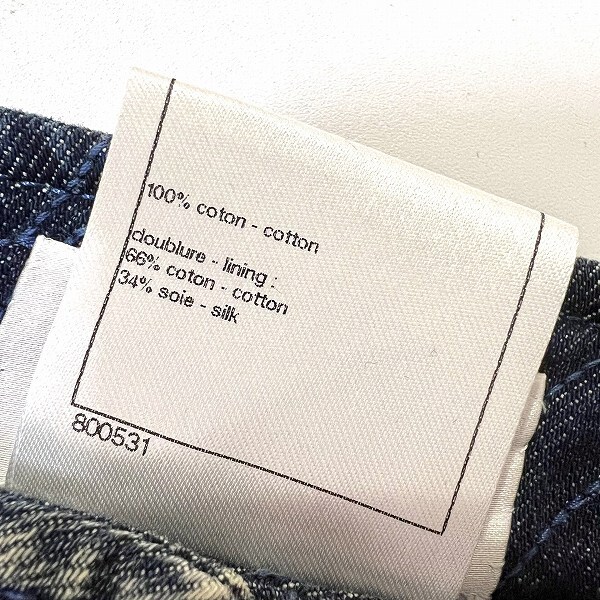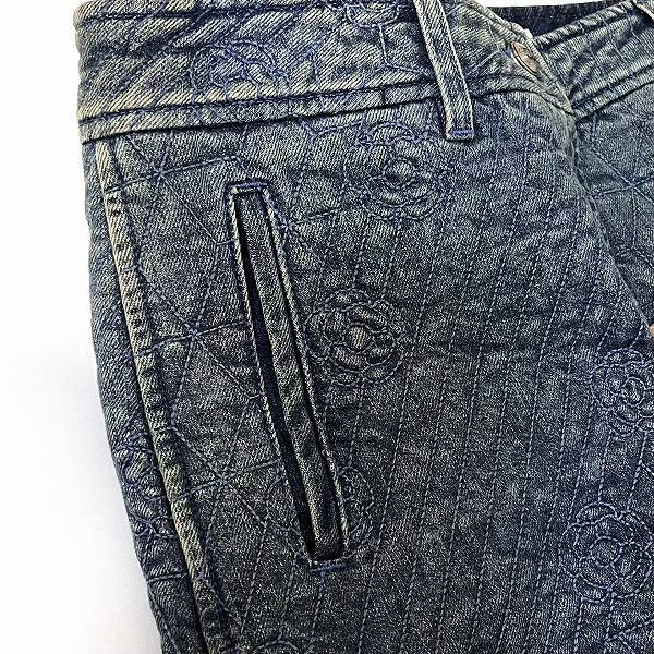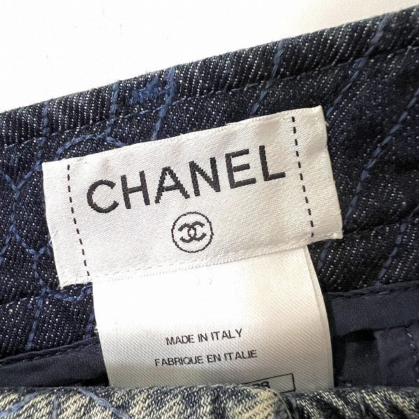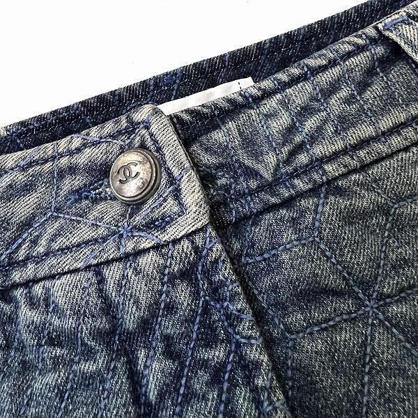 #apc シャネル CHANEL スカート 36 青系 カメリア デニム キルティング シルク混 イタリア製 レディース [907788]