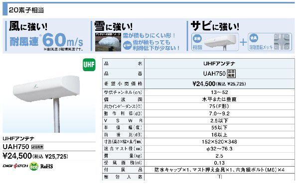 Product name: 共同受信用UHFアンテナ DXアンテナ UAH750