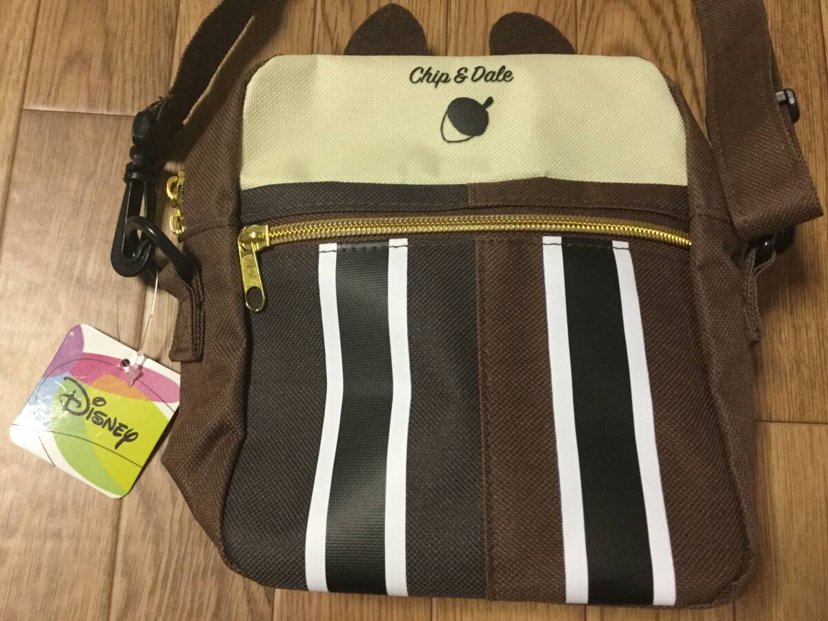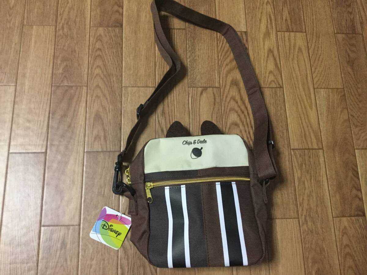 未使用タグ付きディズニーチップ&デールショルダーバッグ。縦19cm身幅16cmまち7cm。紐の調整できます。