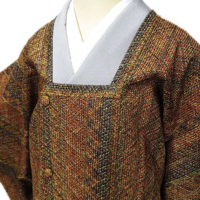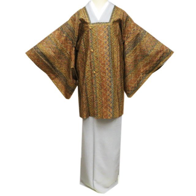 Product name: 道行コート コート 着物 正絹 中古 組織 茶系色 多色 身丈84.5cm 裄63cm きもの北條 A1118-9