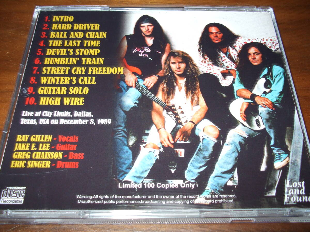 ジェイク・E・リーが素晴らしいギターを弾きまくる、89/12/8のライブを収録した作品です。中古盤ですが再生に支障があるような傷汚れはありません。