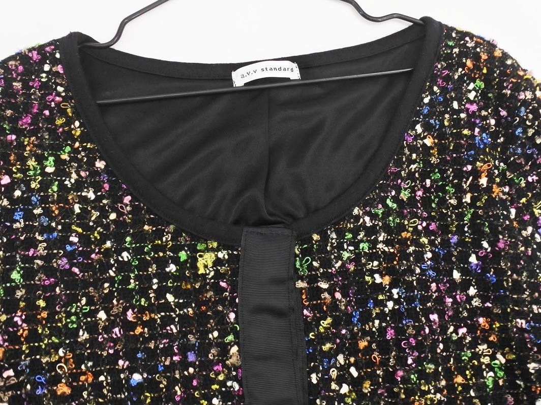 Product name: a.v.v アーヴェヴェ デザイン ノーカラー ジャケット size38/黒xカラフル ◇■ ☆ elb9 レディース