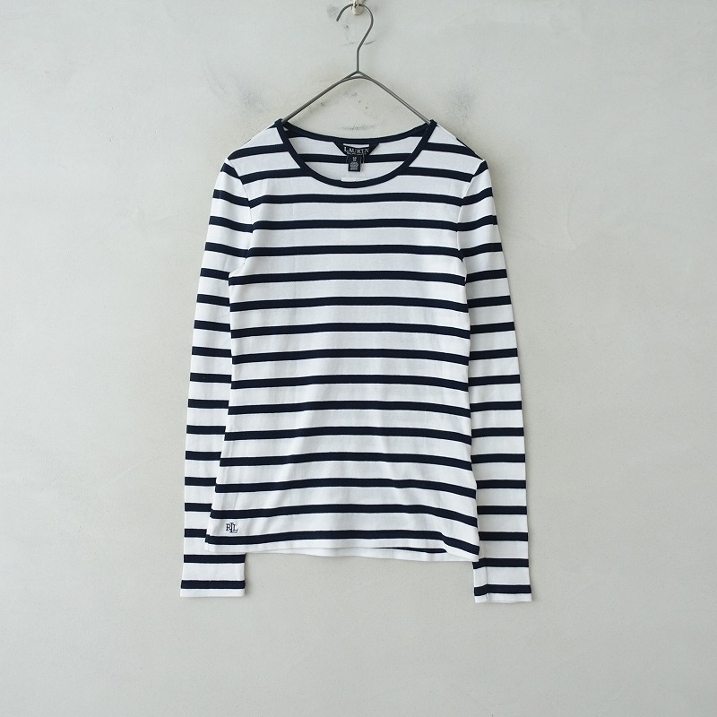 Product name: ローレン LAUREN *コットンボーダーロングスリーブTシャツ*Sラウンドネックカットソー白×黒ラルフローレン(2-2412-320)【80A52】