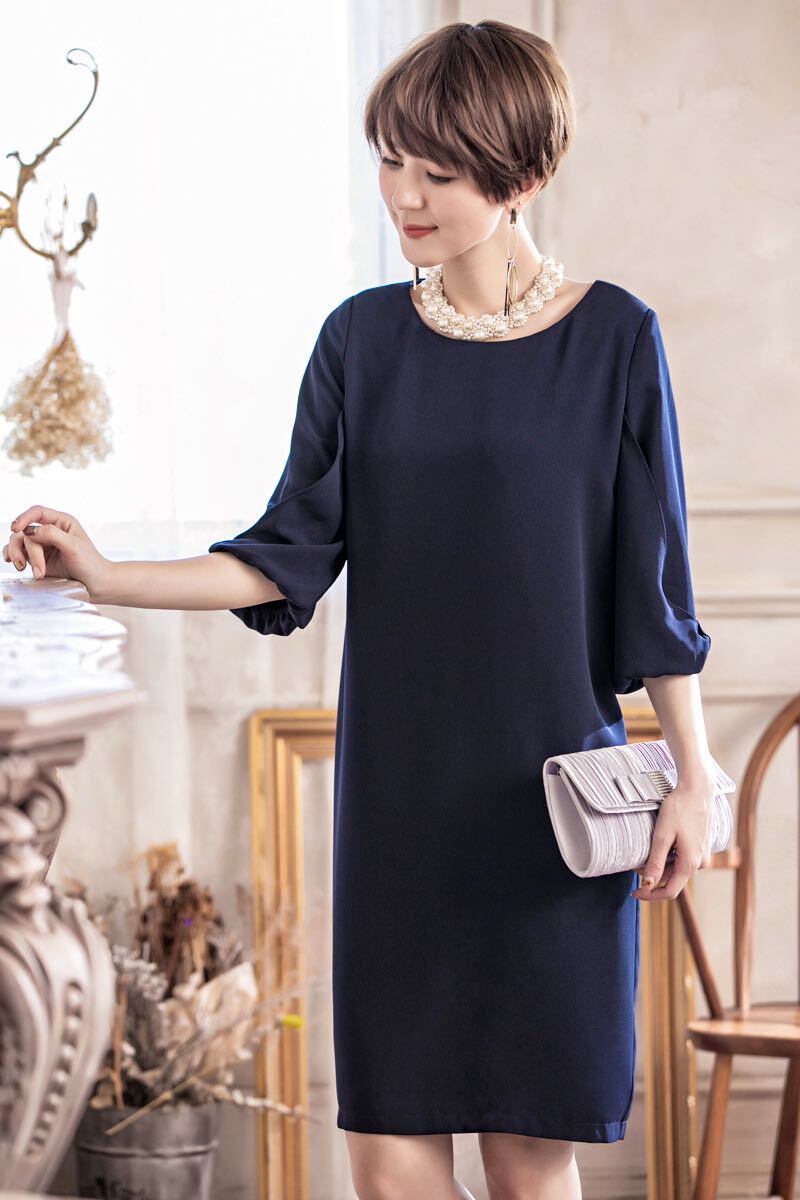 Product name: 激安!S ネイビー 通勤 パーティー 結婚式 卒業式 入園式 入学式 ゆったり 大人可愛いリボン ドレス