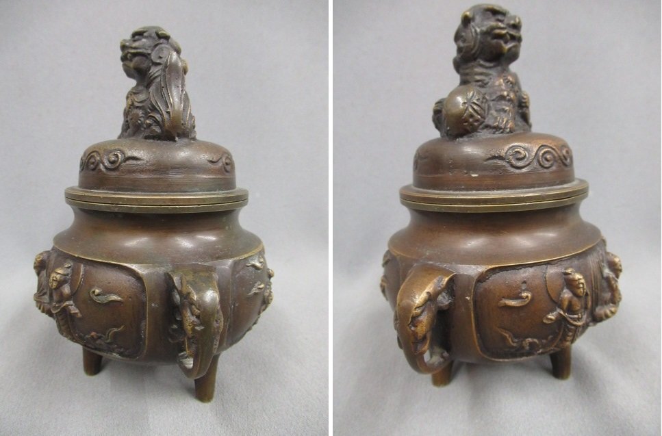 Product name: 【古い銅製 三足・香炉】時代物 仏教美術 香道・茶道具 仏具 三・五具足之内 高・13.5cm
