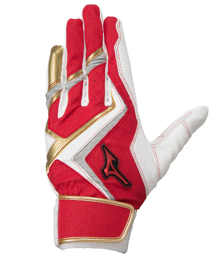 ミズノ [ウィルドライブ レッド バッティング手袋 ジュニア用 両手] 1EJEY24062 レッド×ホワイト×ゴールド JMサイズ