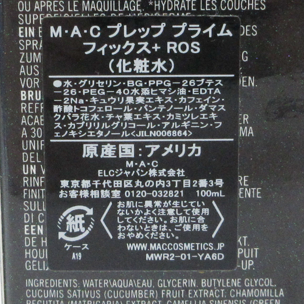 Product name: MAC プレップ プライム フィックス+ ROS 100ml 残量多 C515