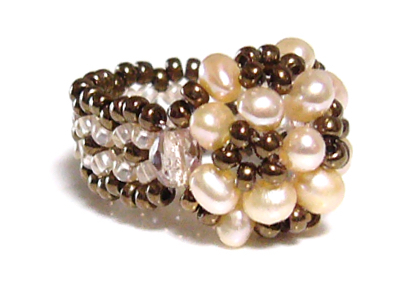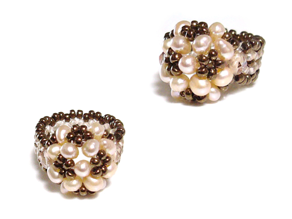 両側にチェコビーズ(淡いピーチカラー)を使用しています。