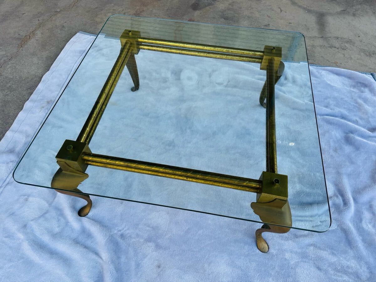 希少/高級/ガラステーブル/真鍮/猫脚/ゴールド 金色/センターテーブル/花台/飾り台/ヴィンテージ/ゴージャス/検:Italy イタリア