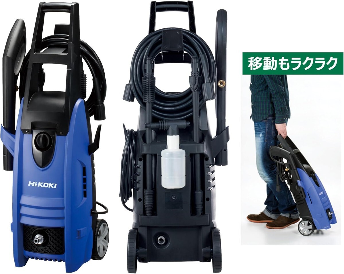 HiKOKI(ハイコーキ) フォームボトル タイヤブラシ 洗浄ブラシ付 家庭用高圧洗浄機 水道接続式 AC100V 1200W 10m高圧ホース付 ブルー FAW105(SC)