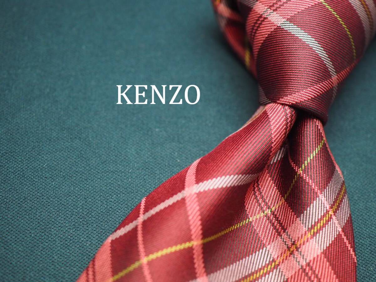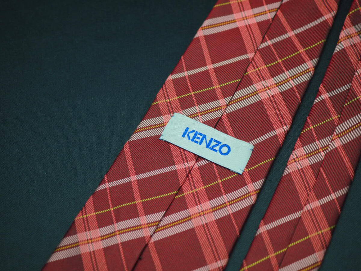 美品【KENZO ケンゾー】 D1112 ワイン チェック SILK ブランド ネクタイ 古着 良品