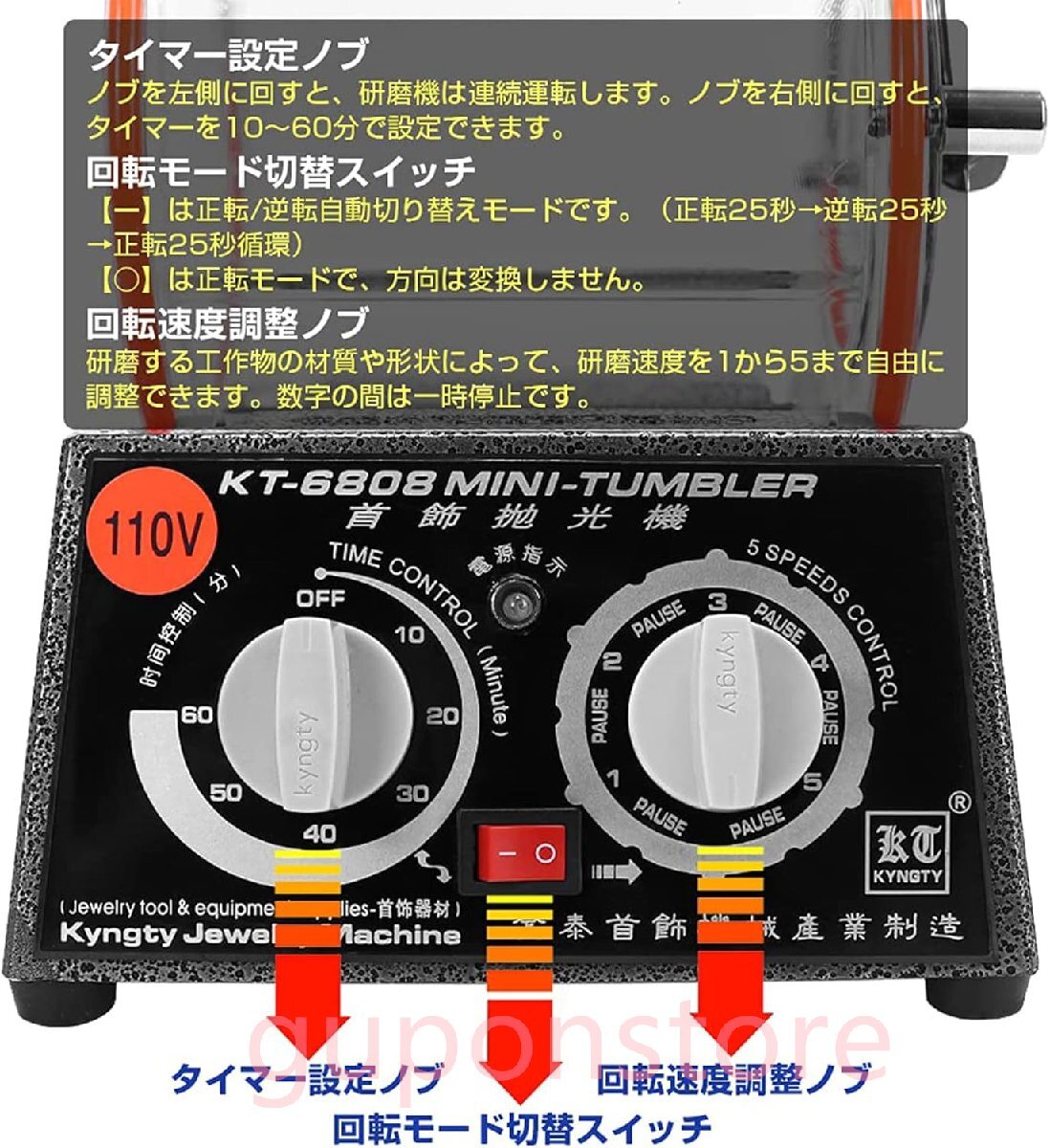 Product name: バレル研磨機 回転バレル研磨機 110V タイマー機能付 スピード5段調整可能 研磨ボール付属 最大容量3kg 家 バレル研磨機+研磨ビーズ450g