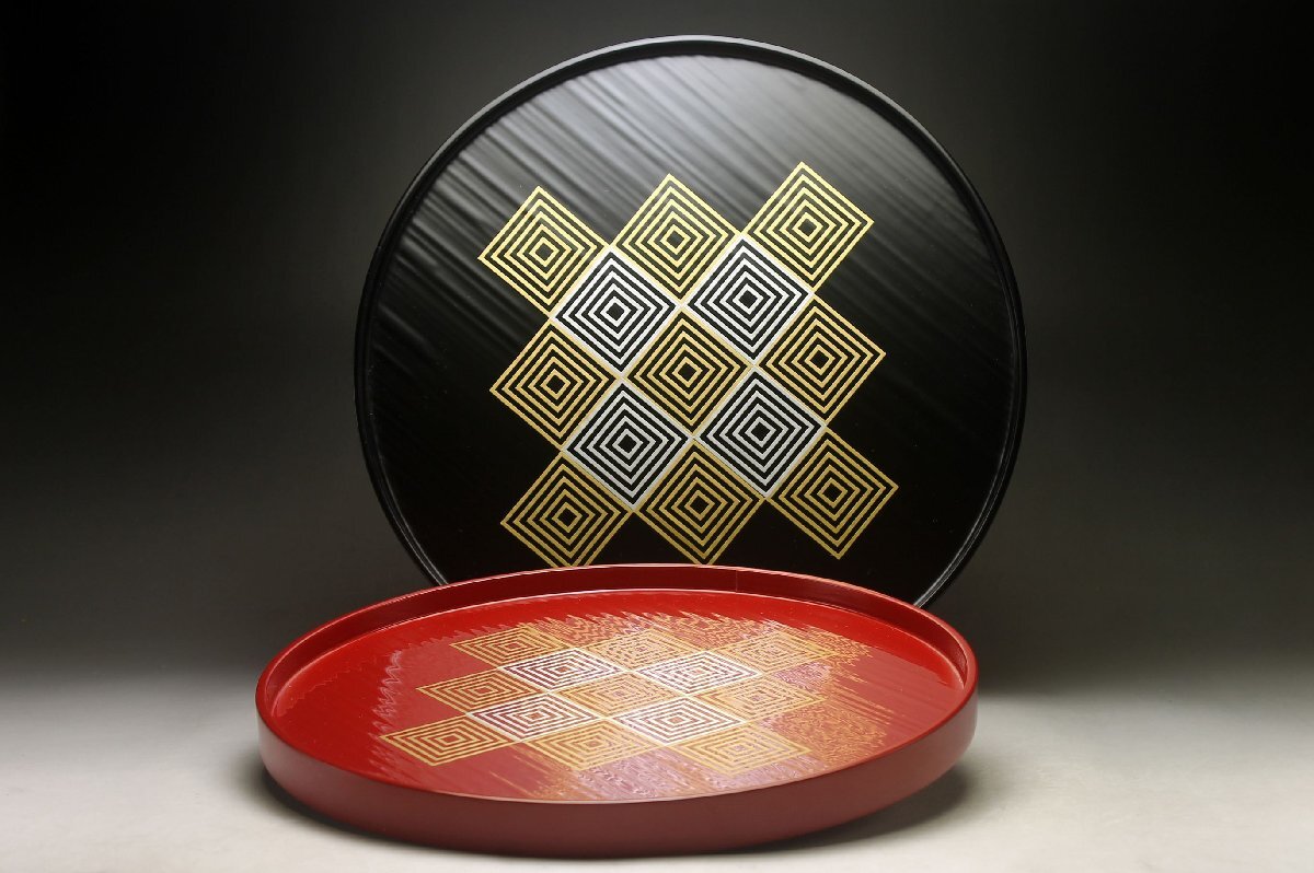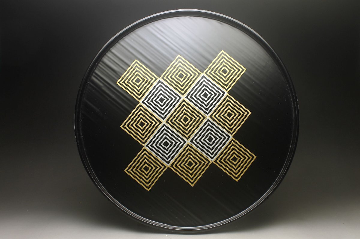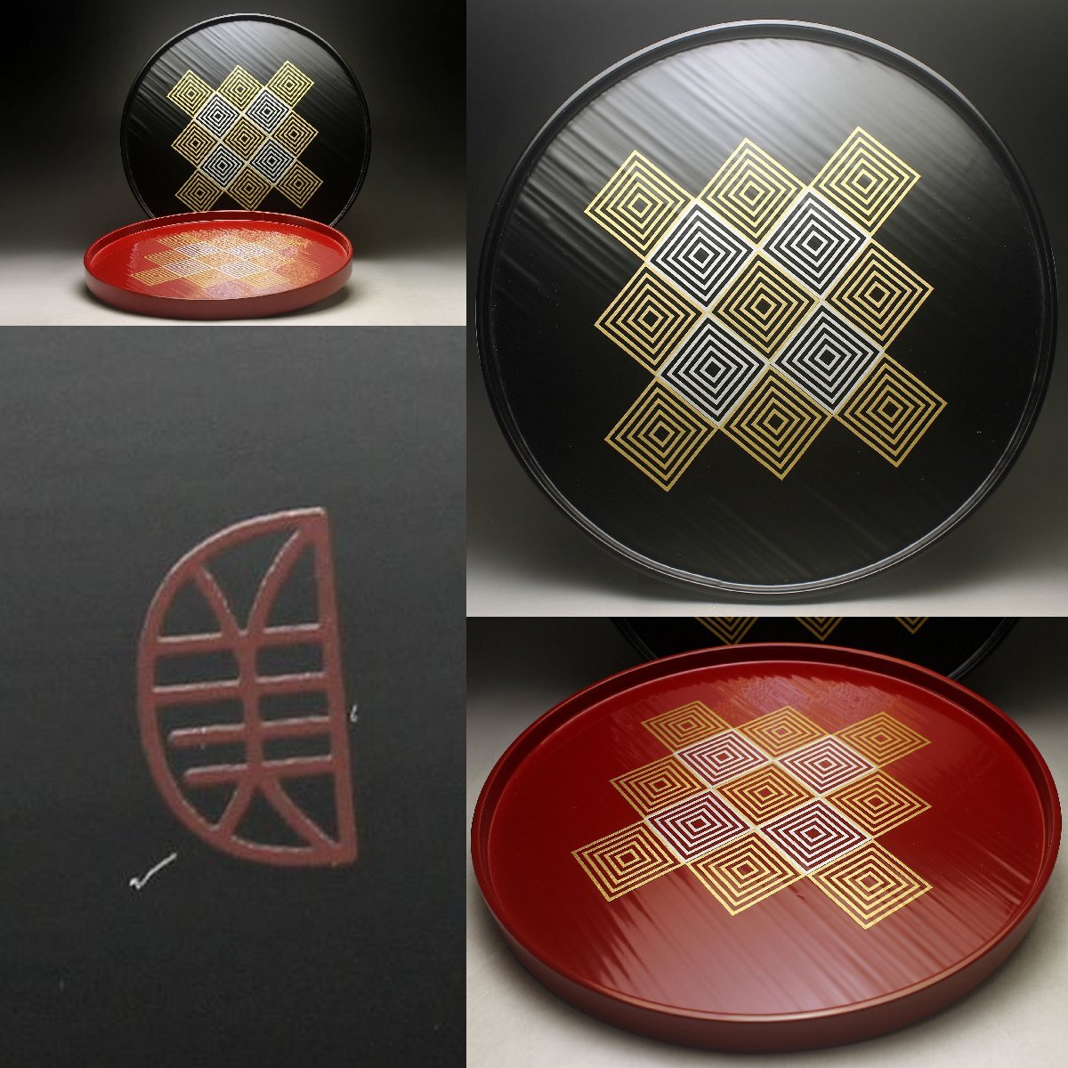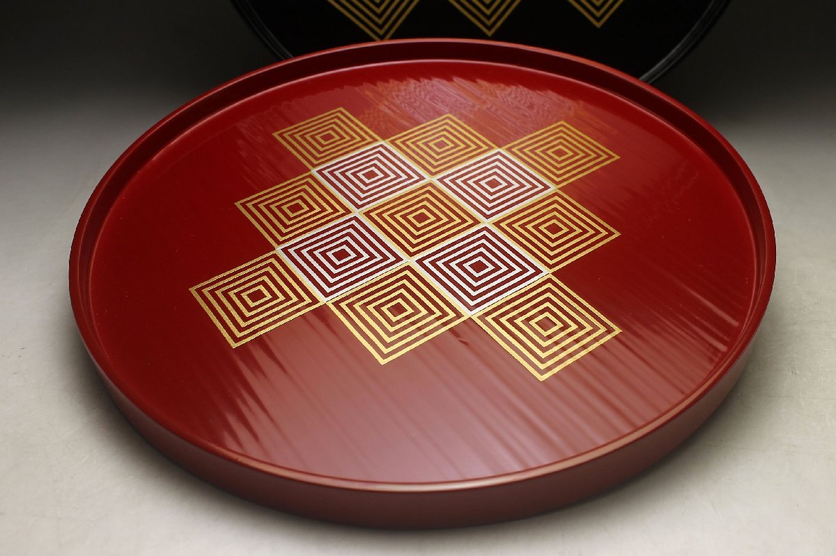Product name: 【余韻】 天然木製 漆塗 円寿盆 大小2枚★未使用品 化粧箱<同梱可>