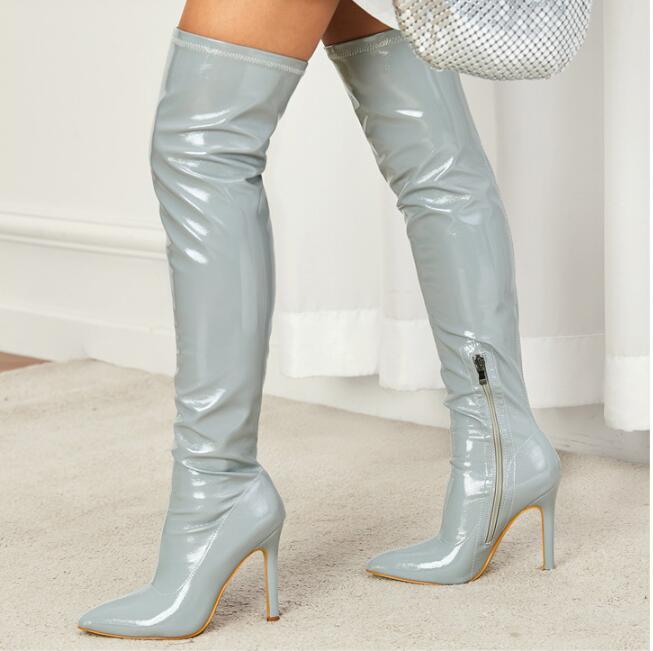 新入荷上質レディース ニーハイブーツ ハイヒール ロングブーツ 靴 美脚 秋冬 シューズ レザーブーツ ピンヒール サイズ選択可ホワイト