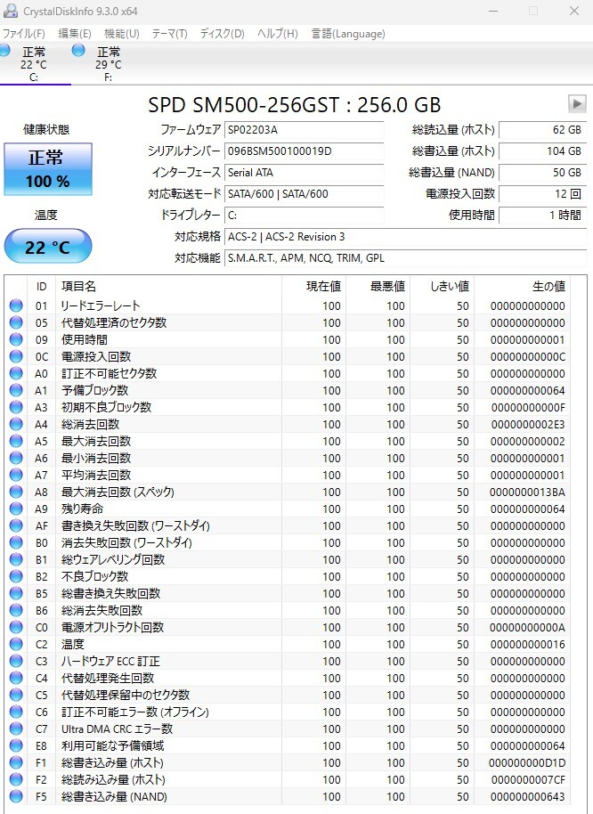 • 光学ドライブ:DVDスーパーマルチドライブ(読込のみ確認)