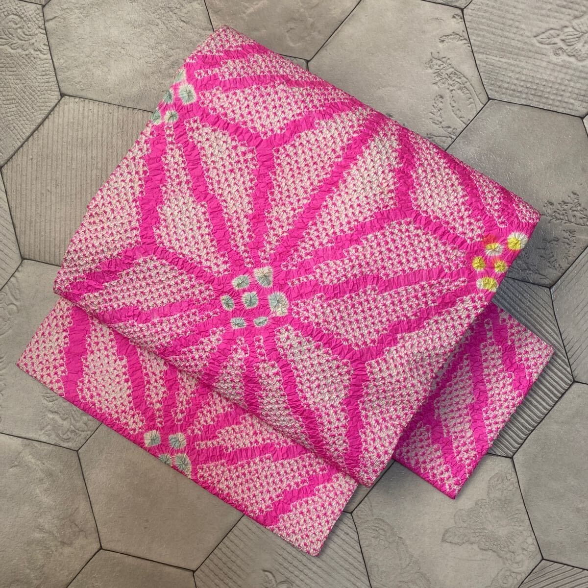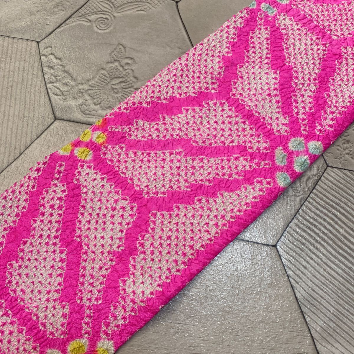 Product name: アンティーク 名古屋帯 着物 絞り ピンク 白地 昭和レトロ 大正ロマン モダン 和洋折衷コーデ リメイク え22-17t