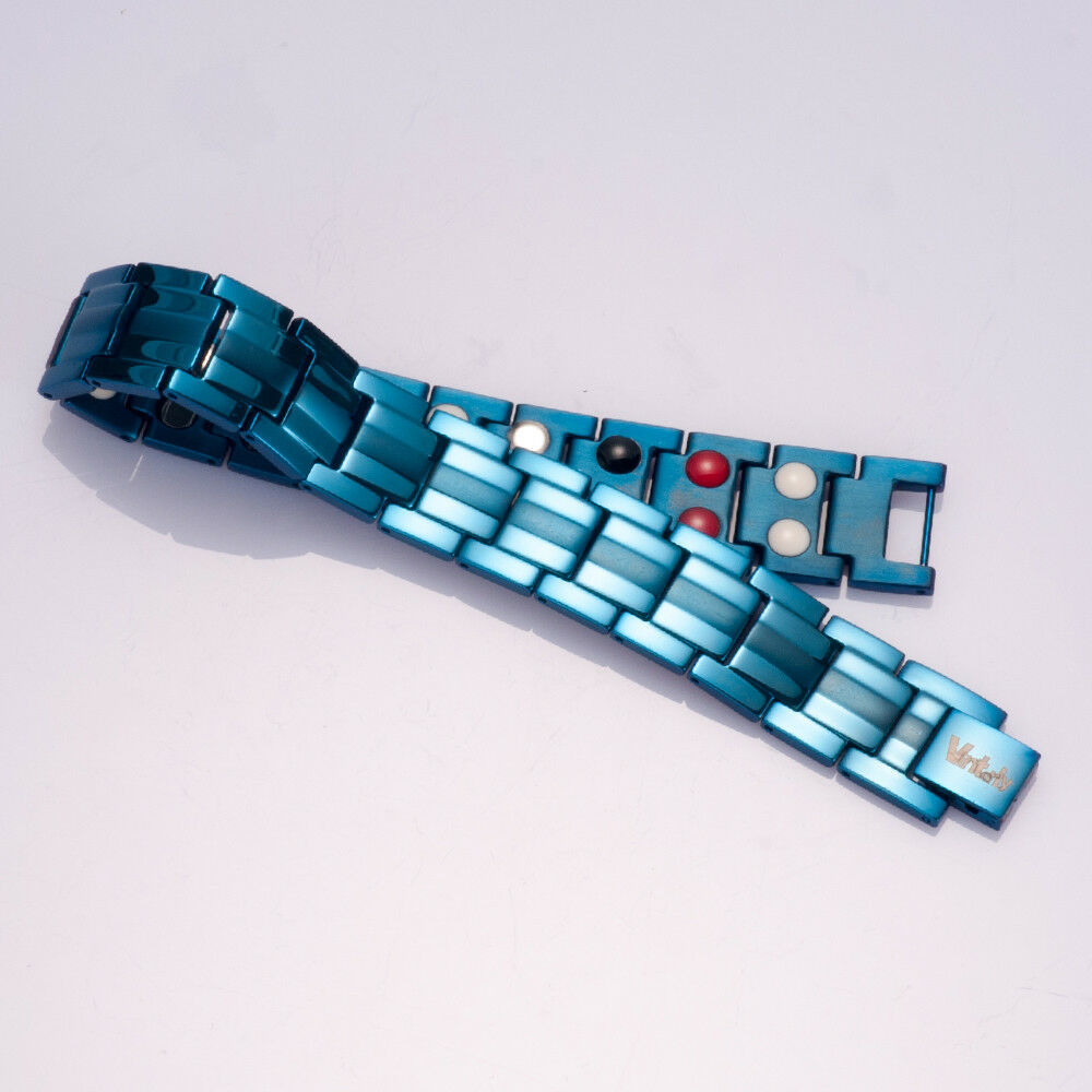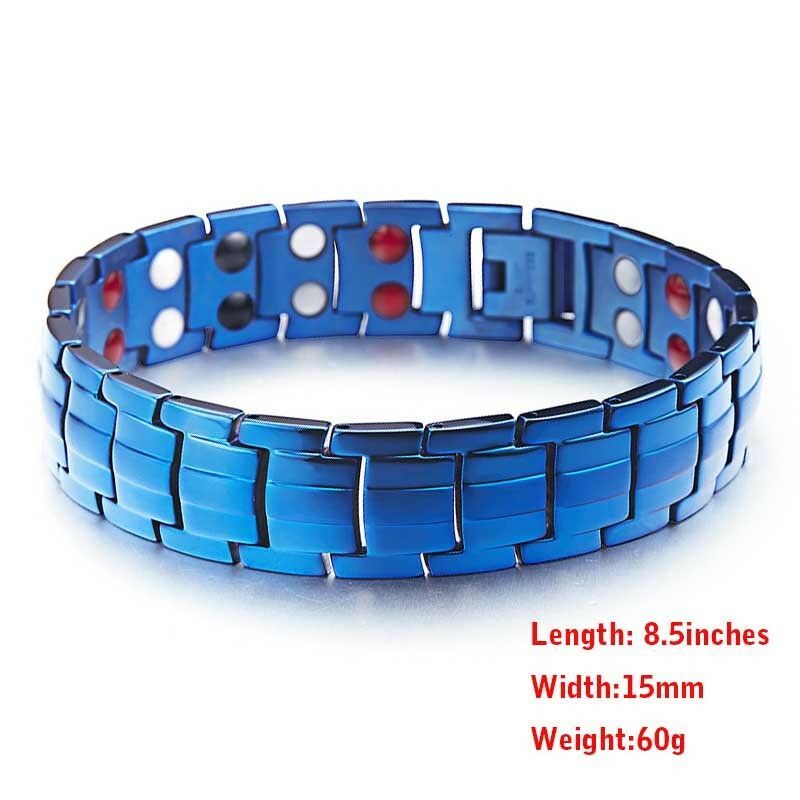 【サイズ調整可】ゲルマニウム 遠赤外線 マイナスイオン マグネット ブレスレット 磁気ブレスレット チタン メンズ 健康 アクセサリー 青