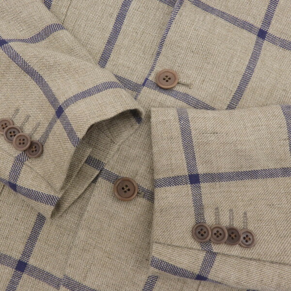 仕様 仕立てはジャケットがシングル 3釦、サイドベント、背抜き、見せ開き、キッスボタン、パッチポケット、段返り、ネーム刺繍 無