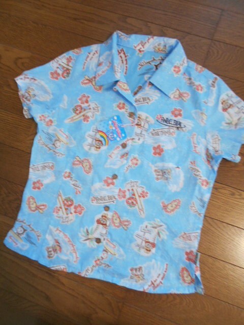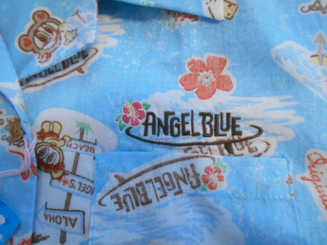 ANGEL BLUE・エンジェルブルー☆キッズ:M(150)☆キュートなハワイアン ナカムラくんプリント 半袖開襟シャツ/サーフシャツ 未使用品