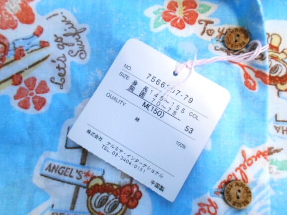 Product name: ANGEL BLUE・エンジェルブルー☆キッズ:M(150)☆キュートなハワイアン ナカムラくんプリント 半袖開襟シャツ/サーフシャツ 未使用品