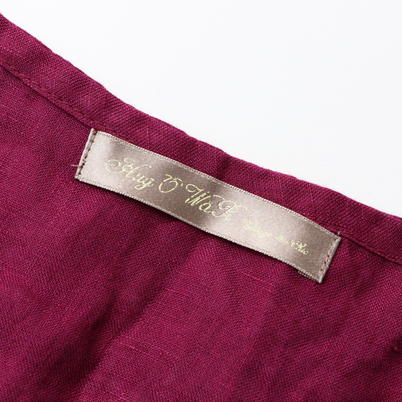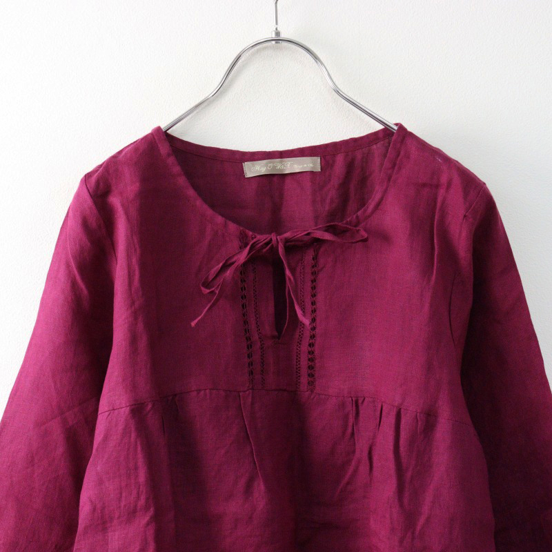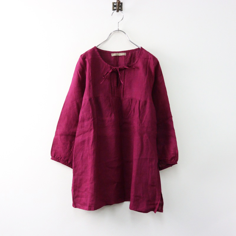 美品 ハグオーワー HUG O WaR 染色加工 リネン スキッパーチュニックプルオーバーブラウス ワイン/麻 シャツ【2400014420999】