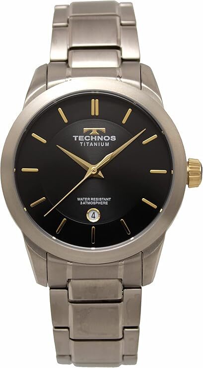 Product name: 新品テクノス T9B77IB  TECHNOS チタンケース&バンド ブラック文字盤×ゴールドインデックス  メンズ