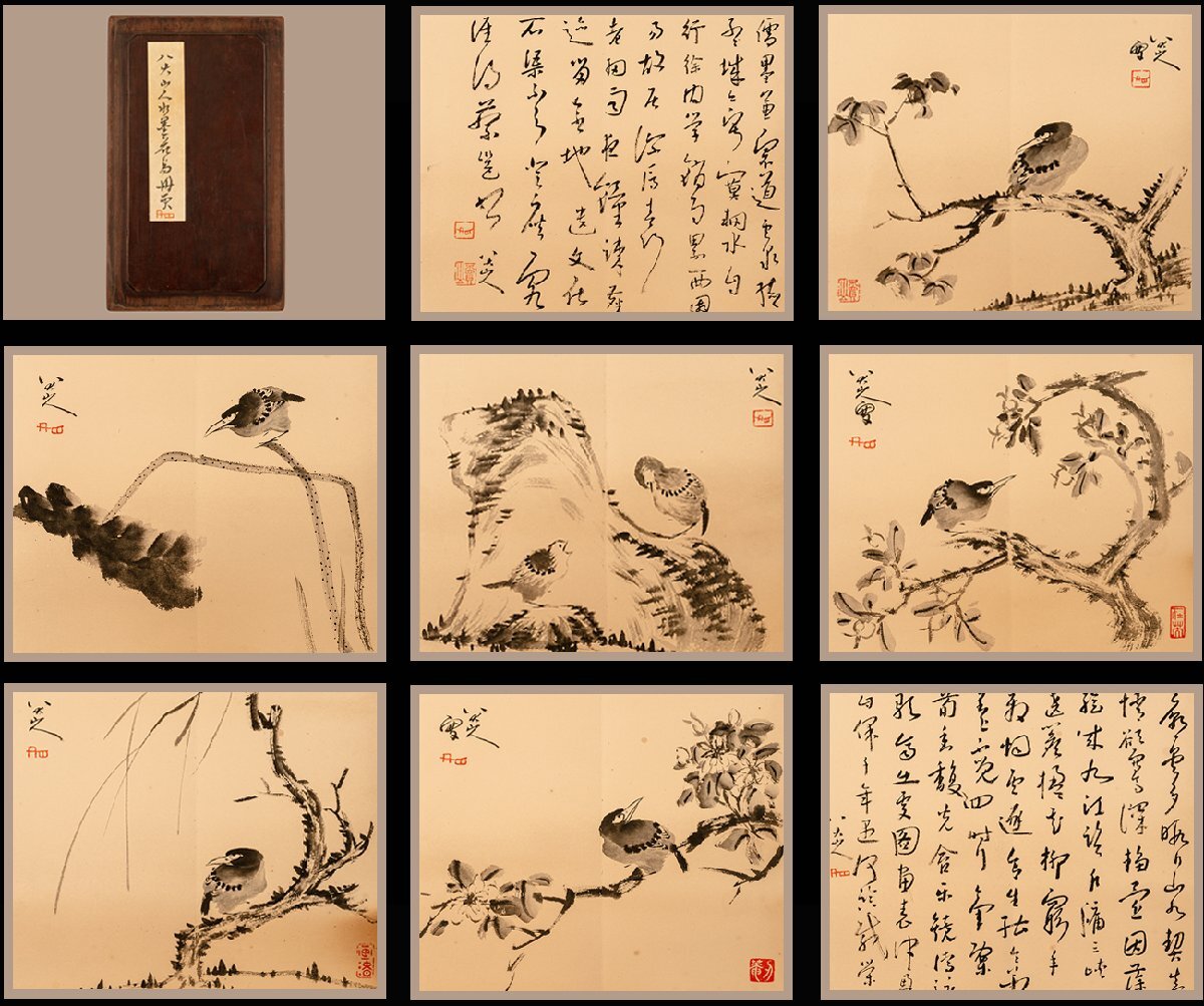 【善古堂】某有名ギャラリー買入「八大山人寫」中国清時代画家 紙本【水墨花鳥図・画貼・冊頁】肉筆保証 画貼 中国字畫 中国古画73S01-2XC10