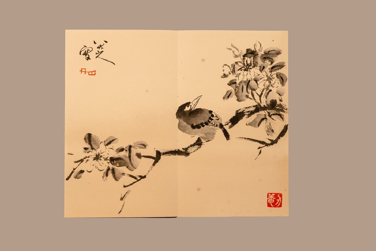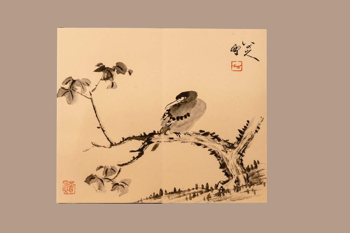Product name: 【善古堂】某有名ギャラリー買入「八大山人寫」中国清時代画家 紙本【水墨花鳥図・画貼・冊頁】肉筆保証 画貼 中国字畫中国古画73S01-2XC10