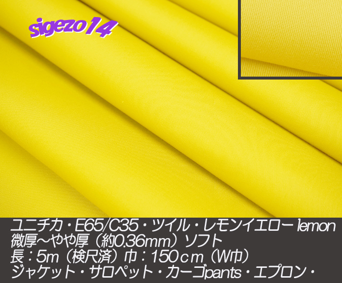 Product name: 22B Y 最終 長3m W巾 レモン イエロー ツイル ユニチカ E65/C35 やや厚soft コート ジャケット カーゴ サロペット ツナギ バック 帽子
