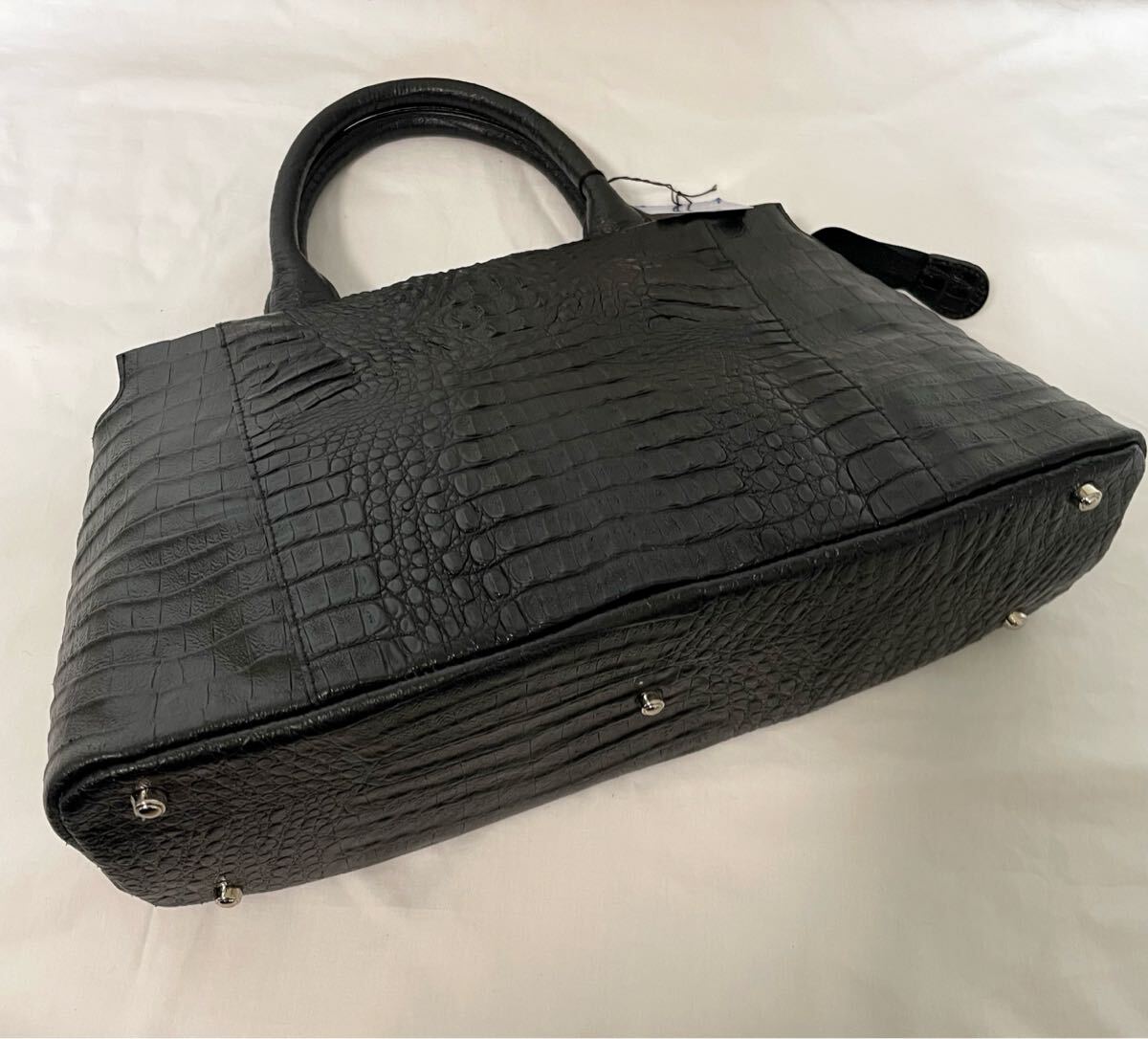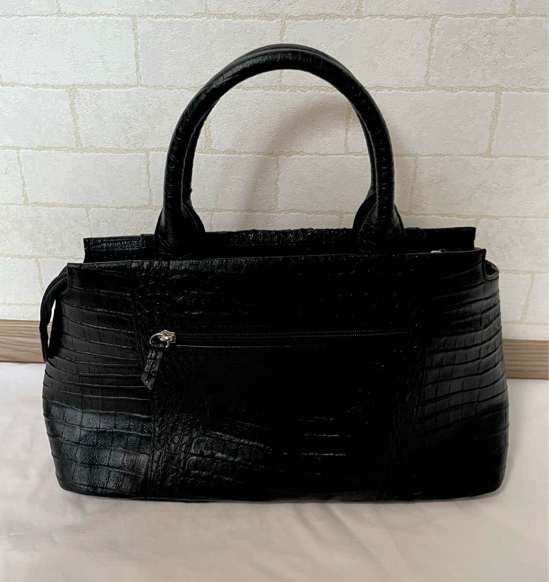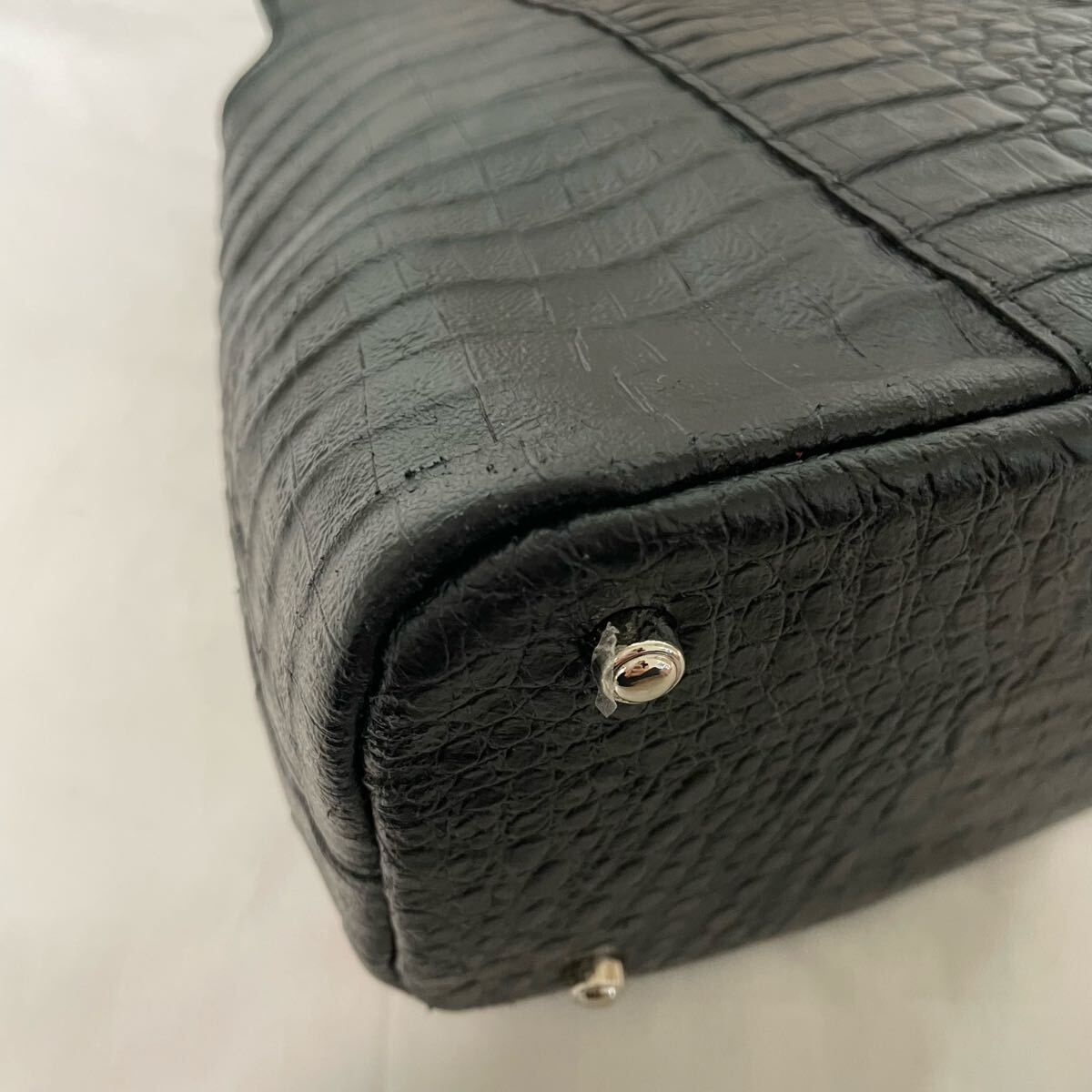 Product name: CAIMAN GENUINE カイマンレザー ワニ革 フォーマル ハンドバッグ ブラック 黒 タグ付き未使用 レディース 鞄 カバン 1990