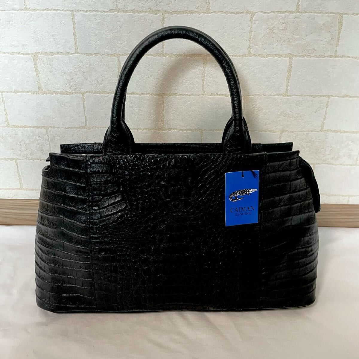 CAIMAN GENUINE カイマンレザー ワニ革 フォーマル ハンドバッグ ブラック 黒 タグ付き未使用 レディース 鞄 カバン 1990