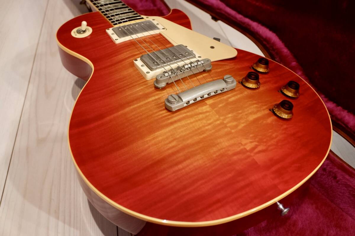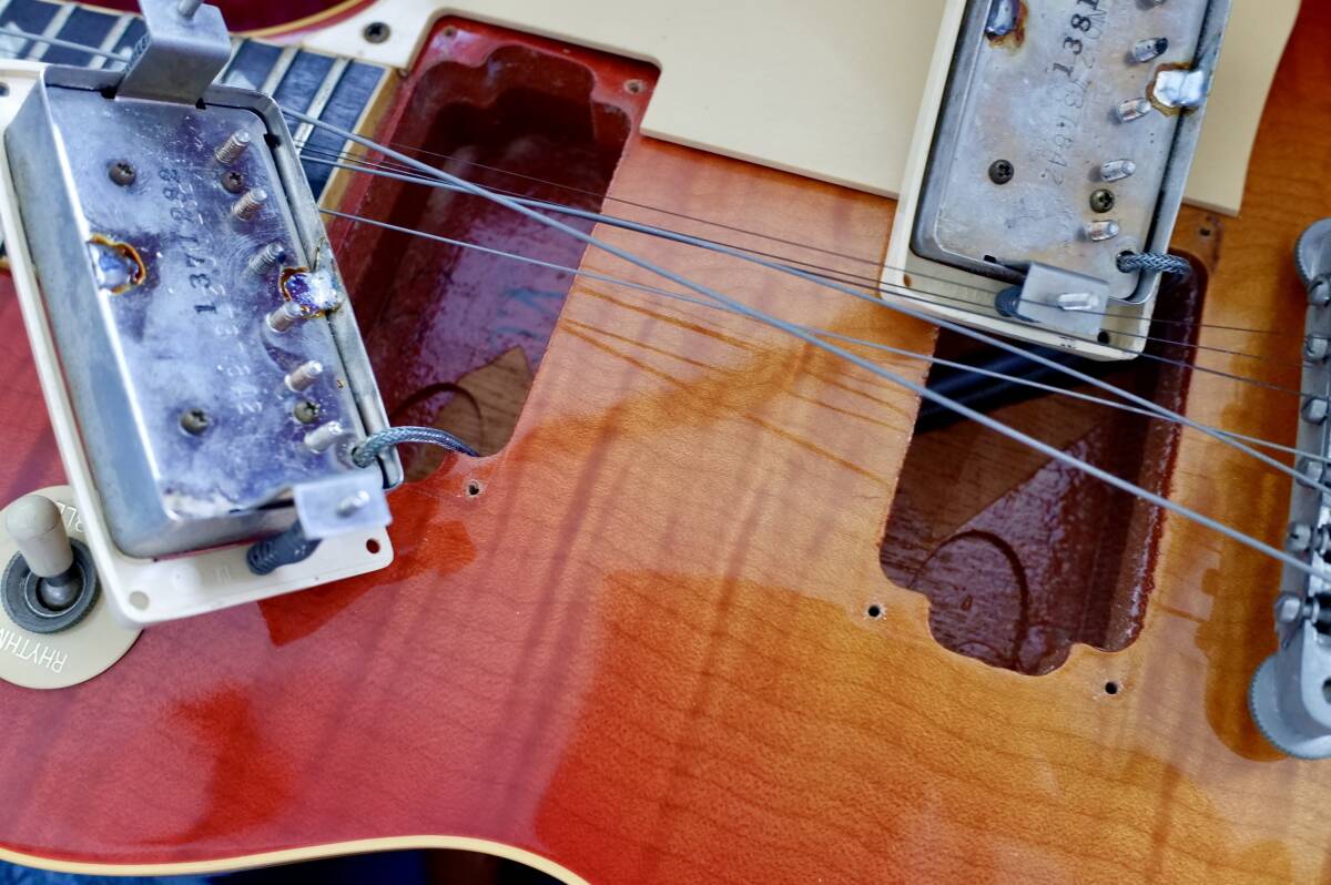 ●本個体はこの年代の個体にしては傷や打コンもほぼ無く、塗装にはまだ十分な艶もあり、中古ギターとしてはほとんど使用感のないエクセレントコンディション。今回出品にあたり初めてトラストロッドの確認しましたが、明らかに使用された形跡がなかったので左右30°程度のみ回して効きも確認、ネックも真っ直ぐで安定、オリジナルフレットも充分残っており低い弦高でもびびりも詰まりもなくとても弾き易いです。オリジナルケースも美品です。