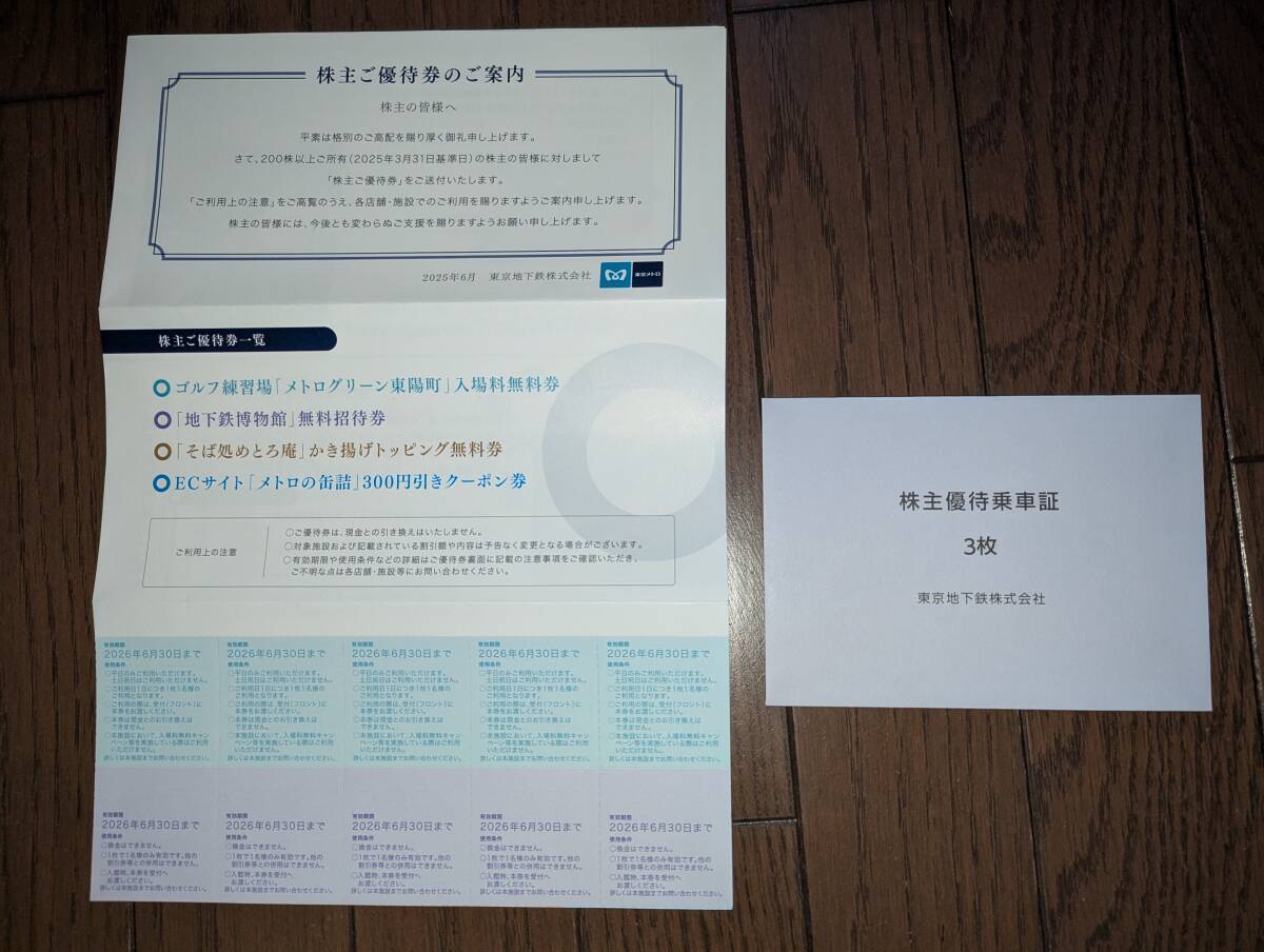 Product name: 【送料85円~】東京メトロ株主優待乗車証3枚+優待券一式