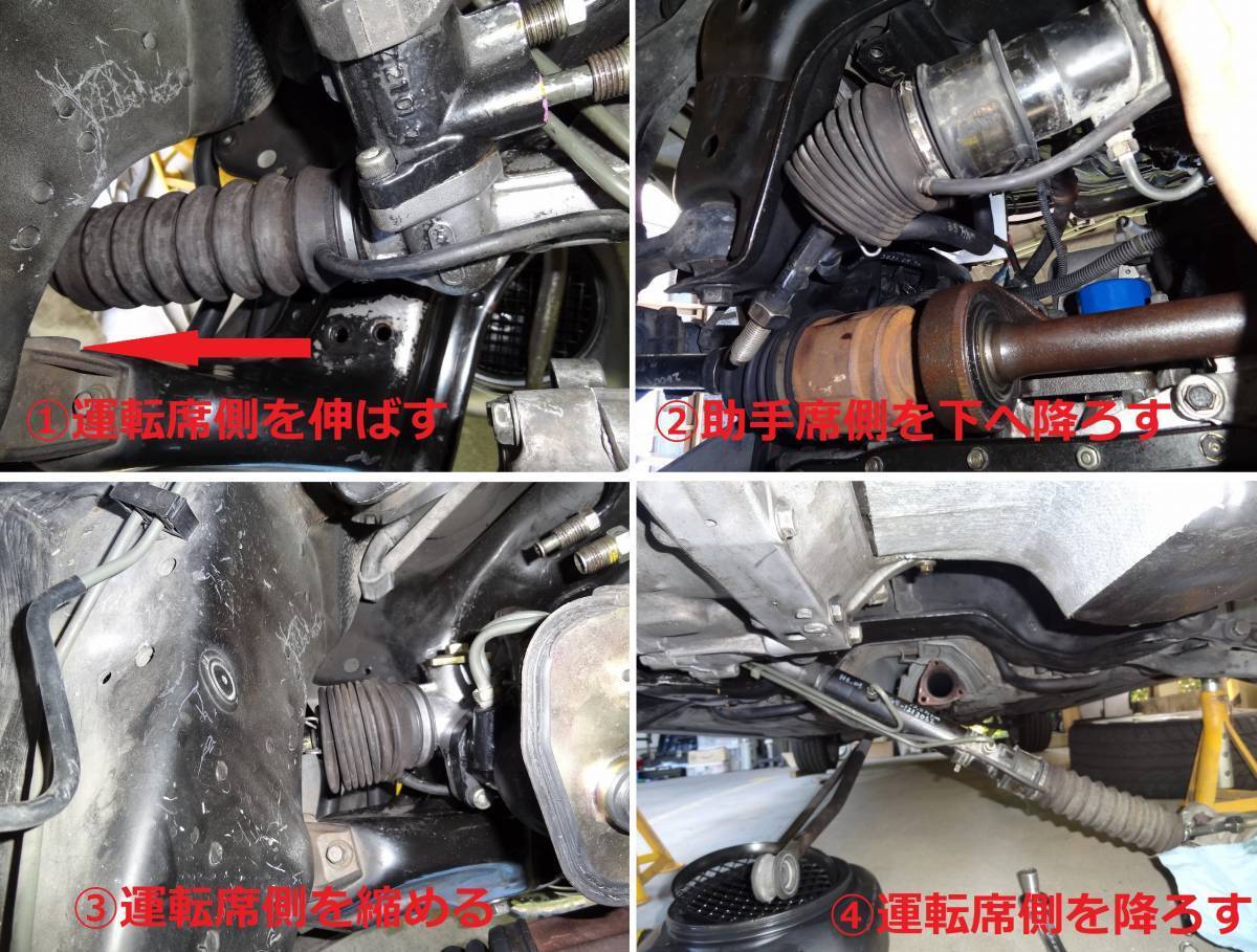 外すと、ラックの歯溝で右シリンダーのオイルシールを傷つけてしまいます。