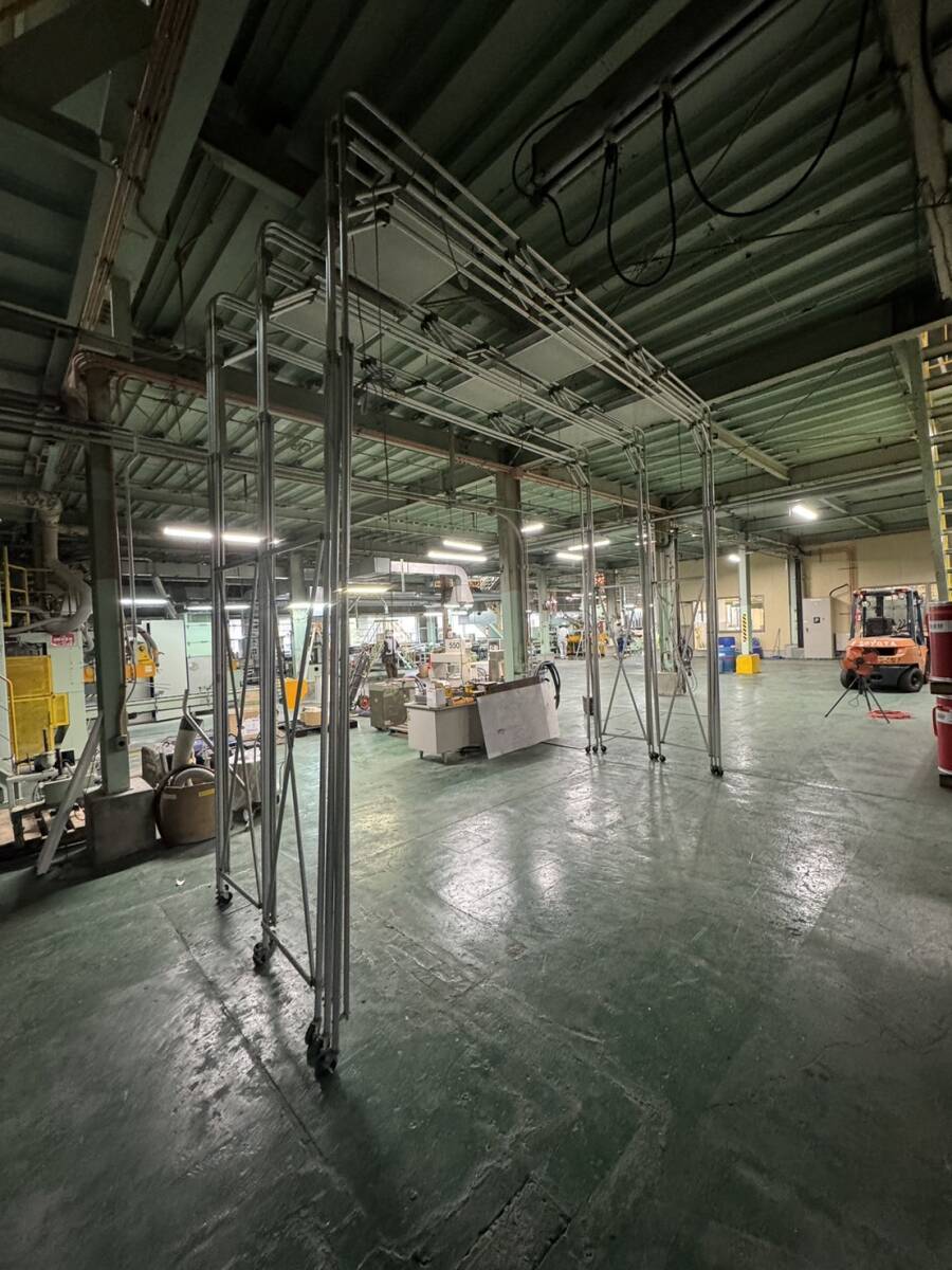 062499 軽量鉄骨倉庫骨組セット ハイルーフ伸縮性簡易塗装ブース エアークリーナー6か所キャスター付 シート無 ガレージ車庫倉庫事務所 直