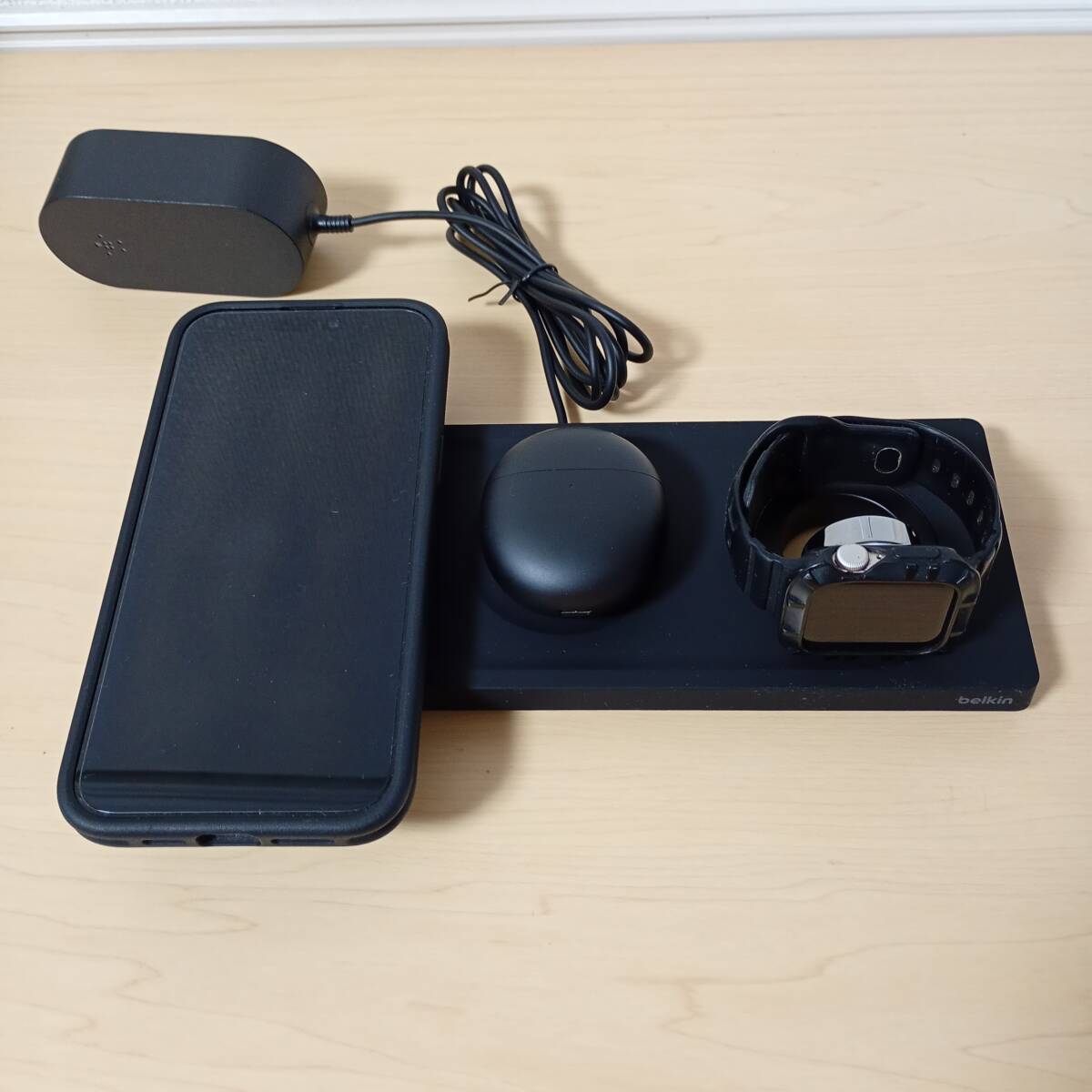 【中古】belkin BoostCharge Pro MagSafe付き3-in-1ワイヤレス充電パッド WIZ016