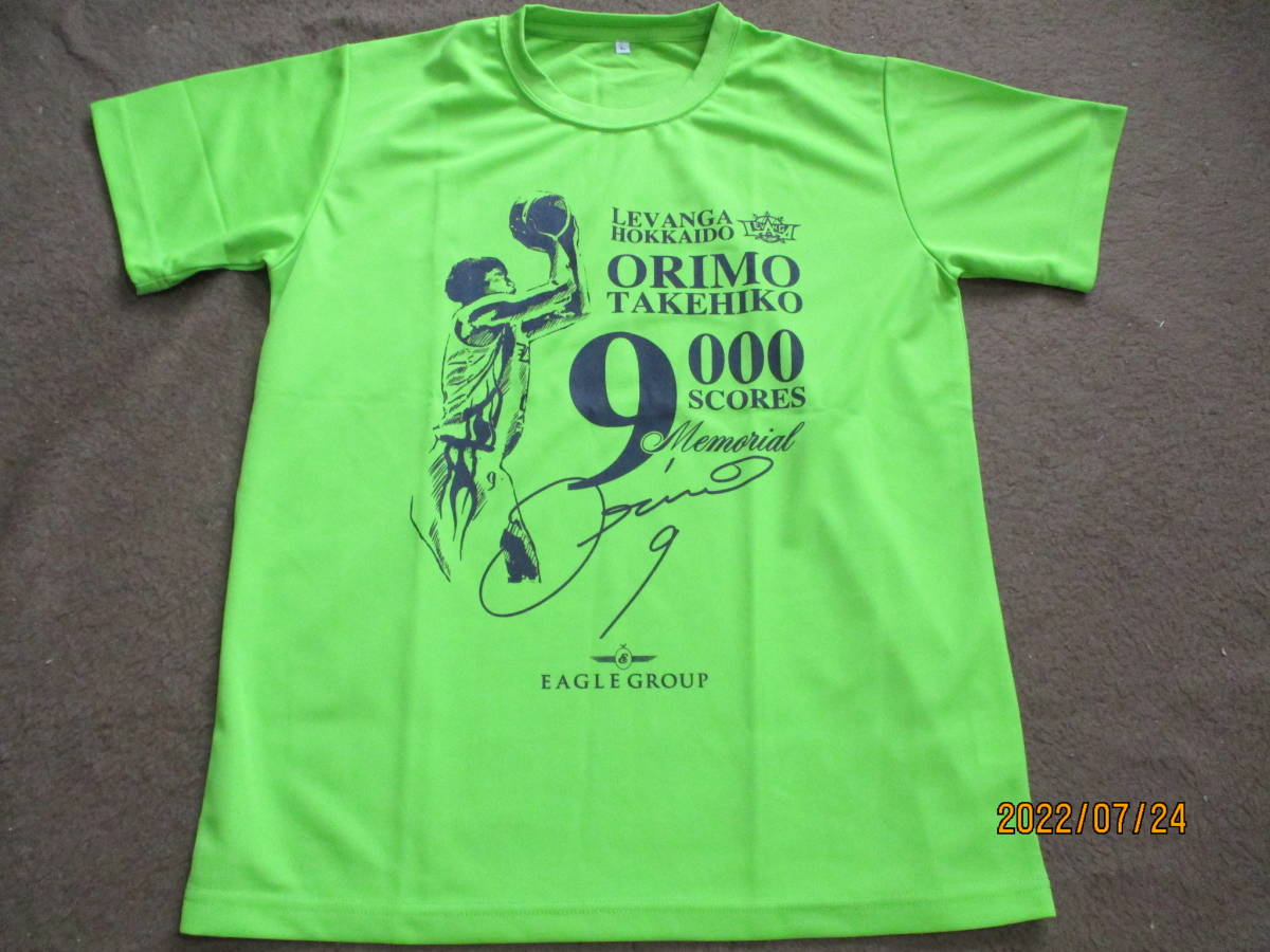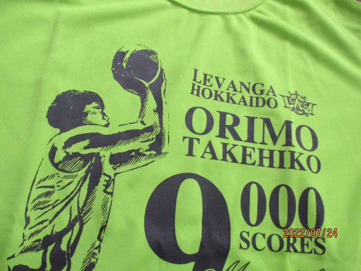 レバンガ北海道と日本バスケット界のレジェンドである、折茂 武彦氏が、20161128日に達成した、日本人初の通算:9000得点を、記念する希少な、メモリアル・シャツでLサイズの標記”