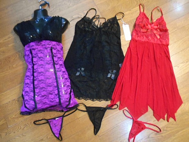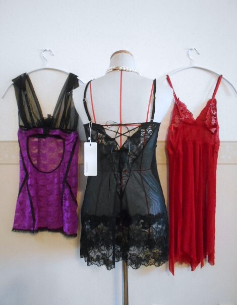 Product name: エレガントな総レース+レースコンビのセクシー系Tバック付ランジェリー/スリップ 3セット 未使用品