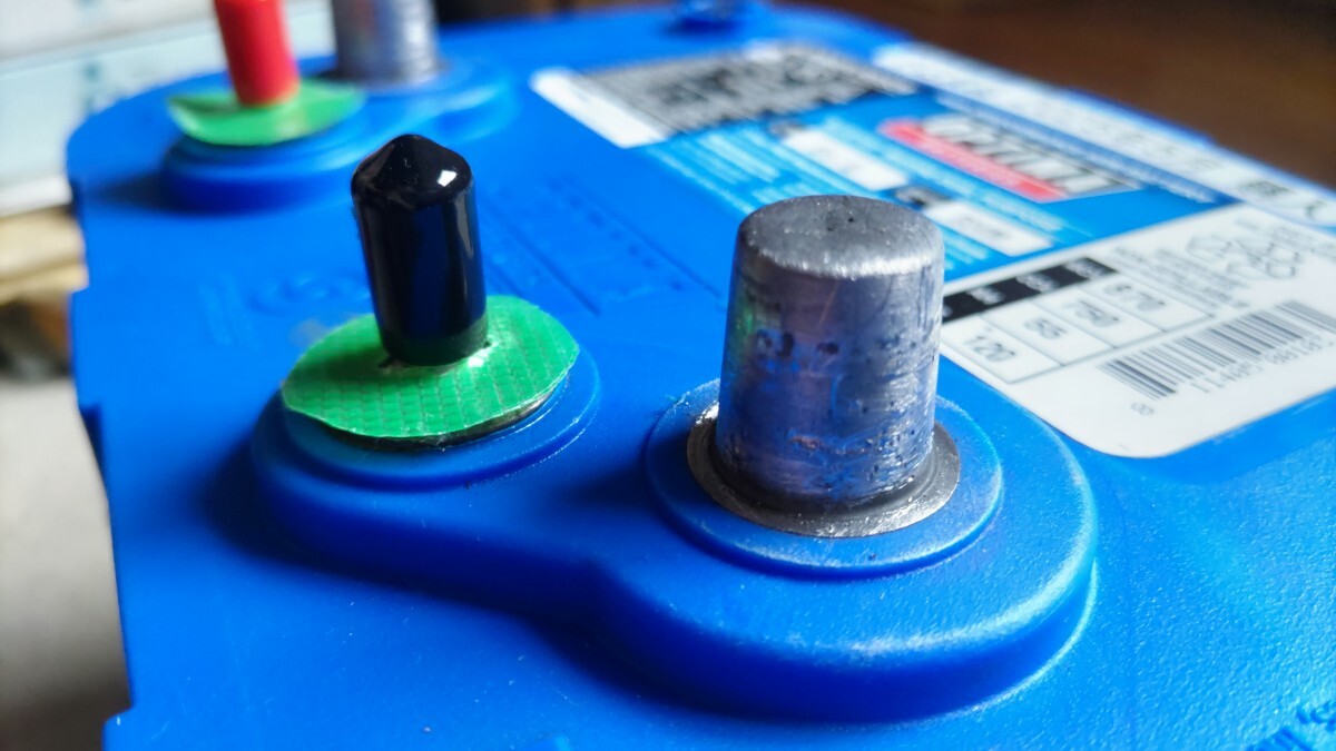 ヤフオクにて購入時からバッテリーのマイナス端子側コーナー部に何かを落としたような跡があります