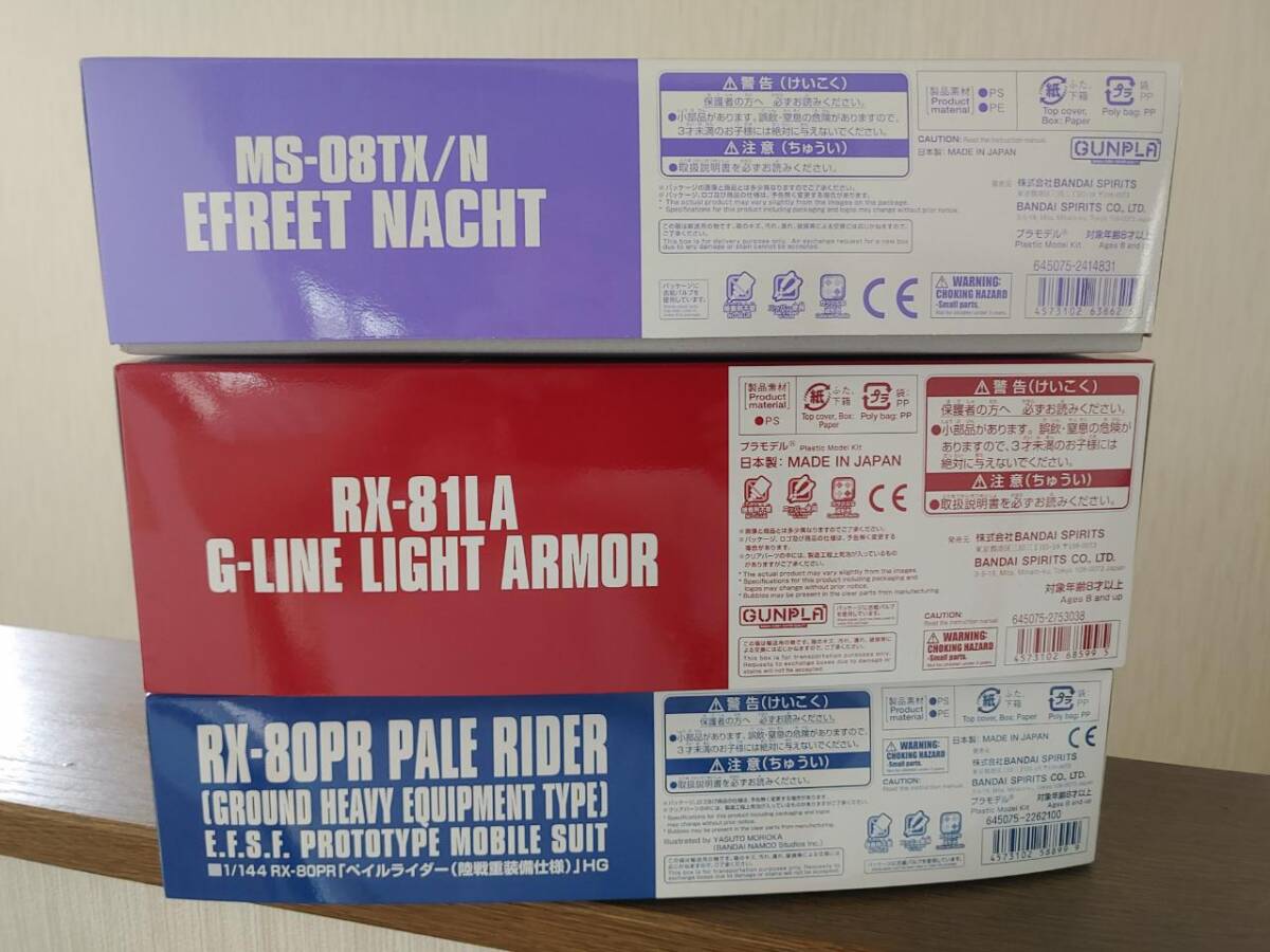 プレミアムバンダイ限定 HG 1/144 ペイルライダー、ジーライン ライト アーマー、イフリート ナハト の未開封品3点セットになります。