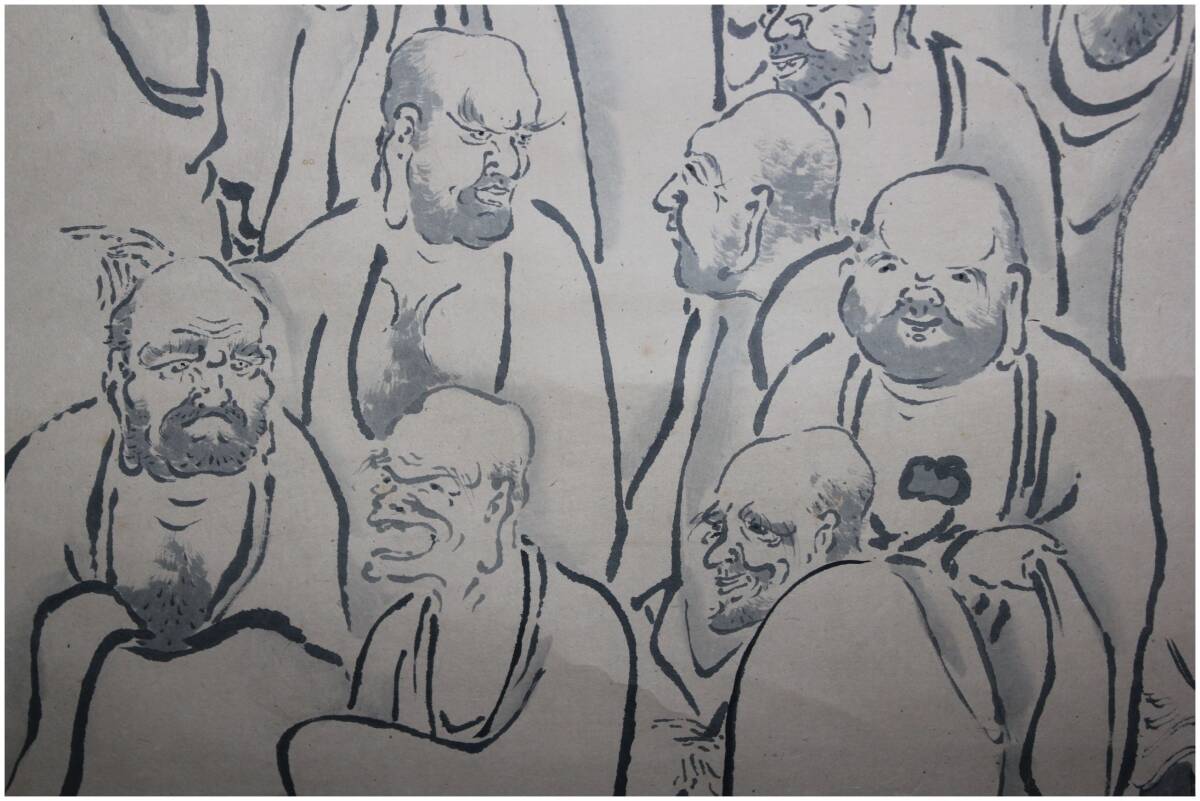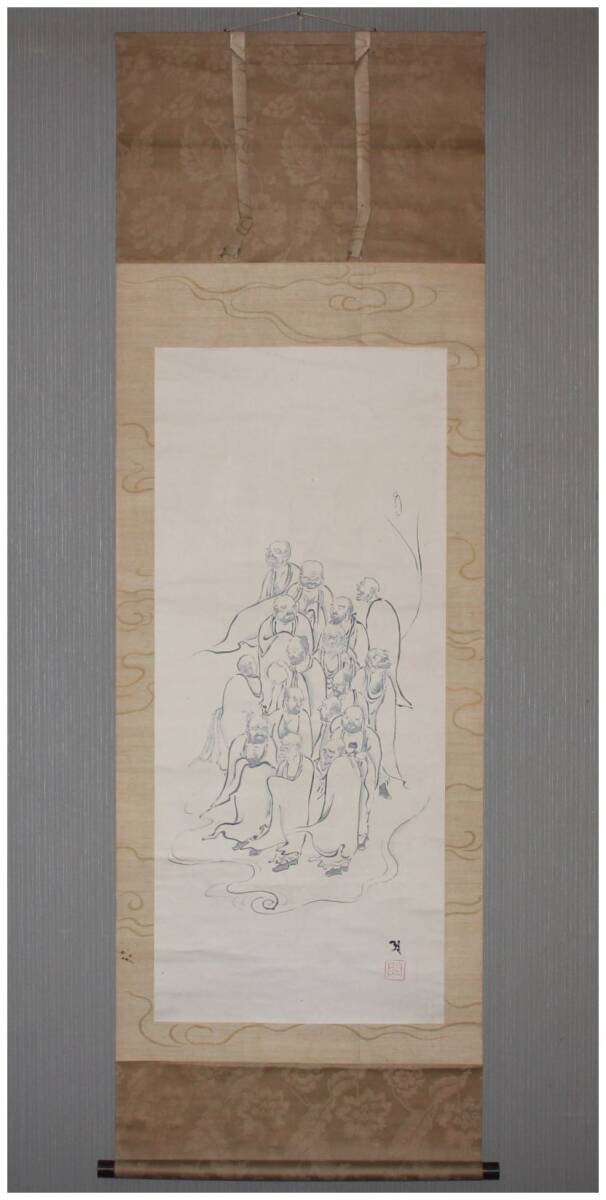 江戸後期画僧・【和田呉山】 十六大阿羅漢像図 掛軸出品です
