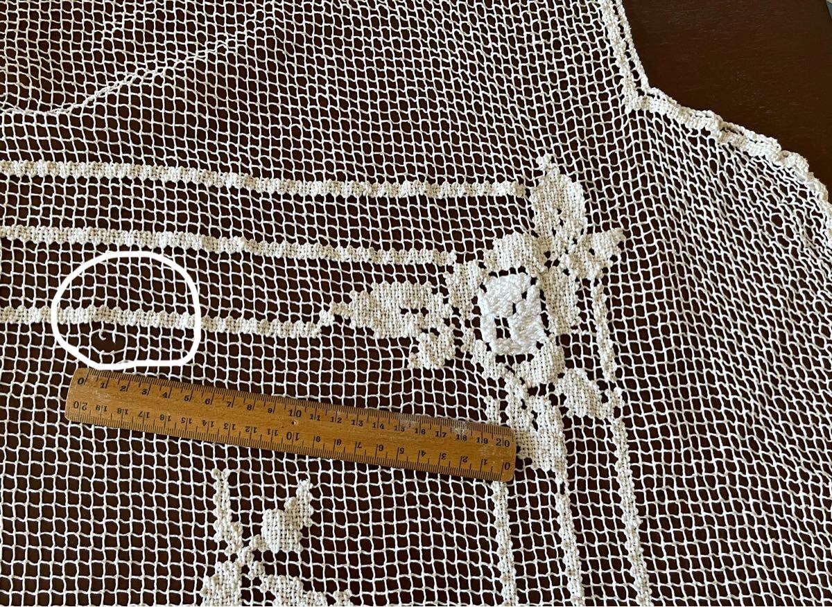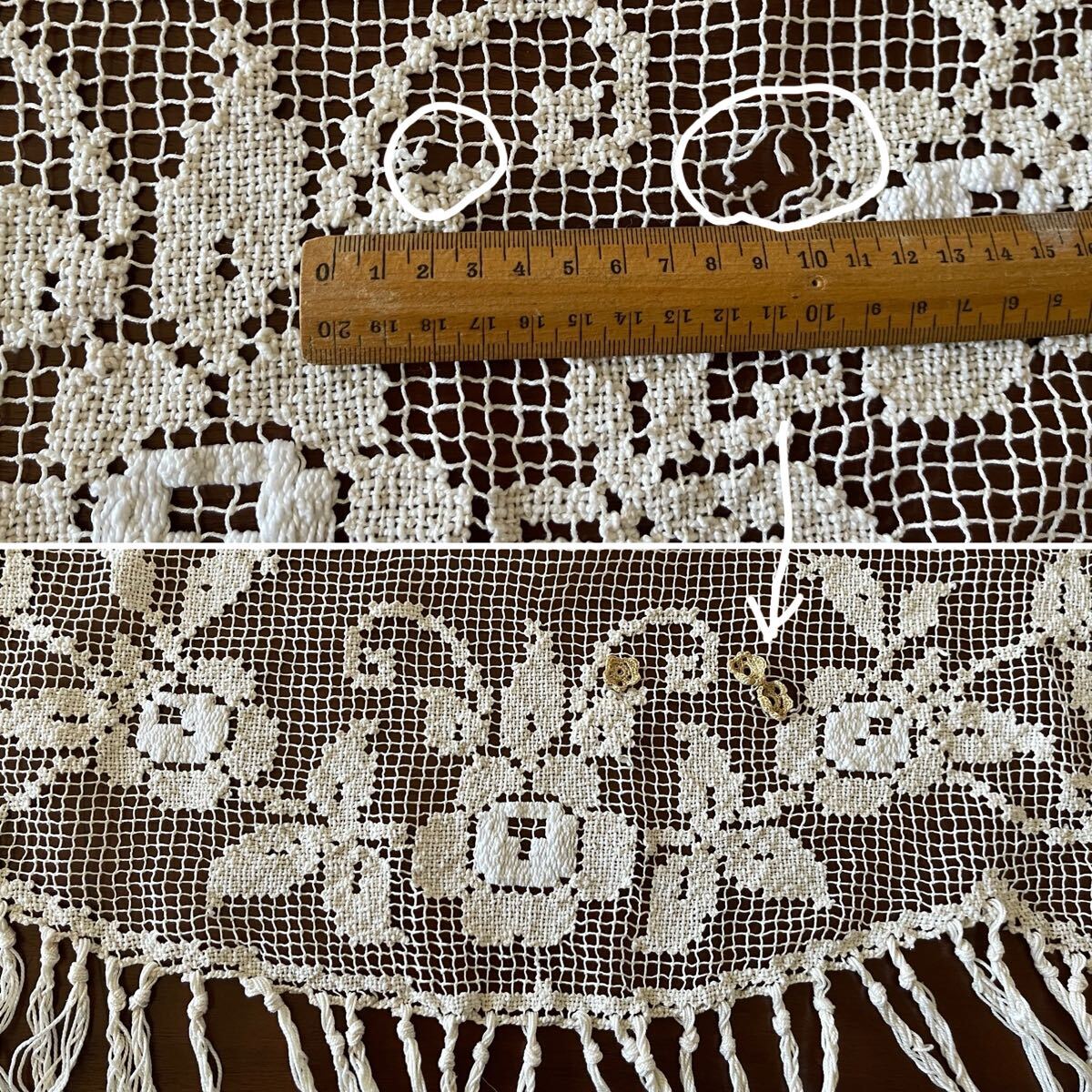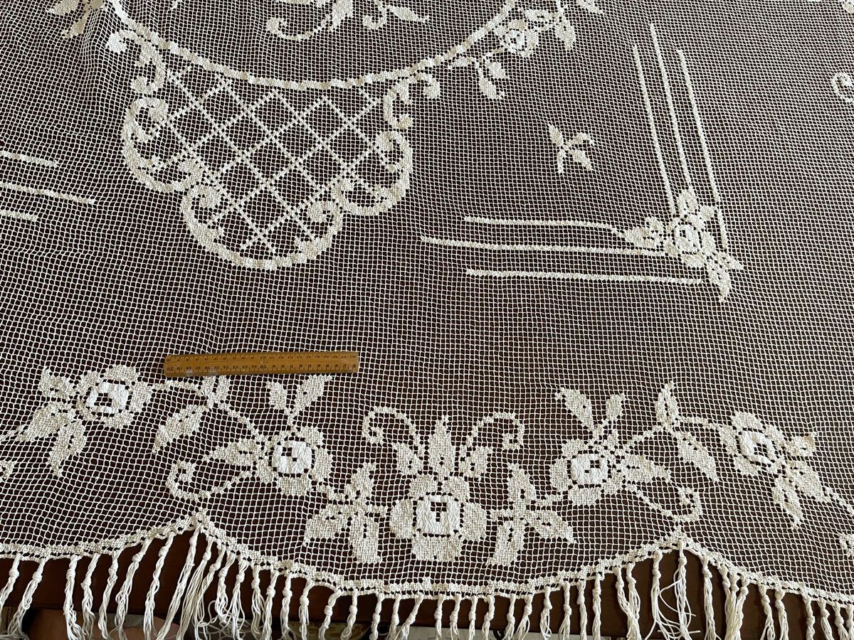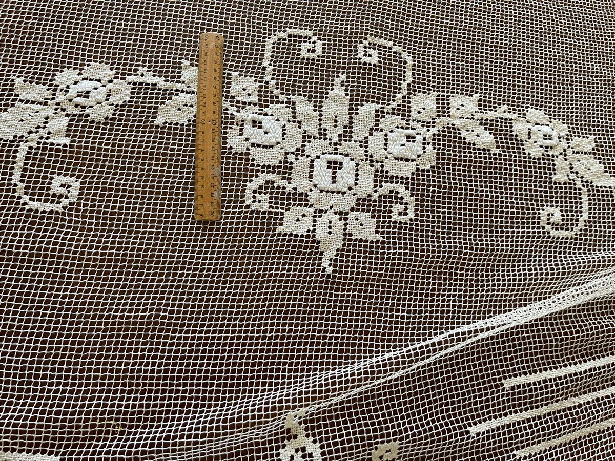 フィレ生地に薔薇の刺繍が全体に施され、ベットカバーとして仕立てられ使われてきたものになります。