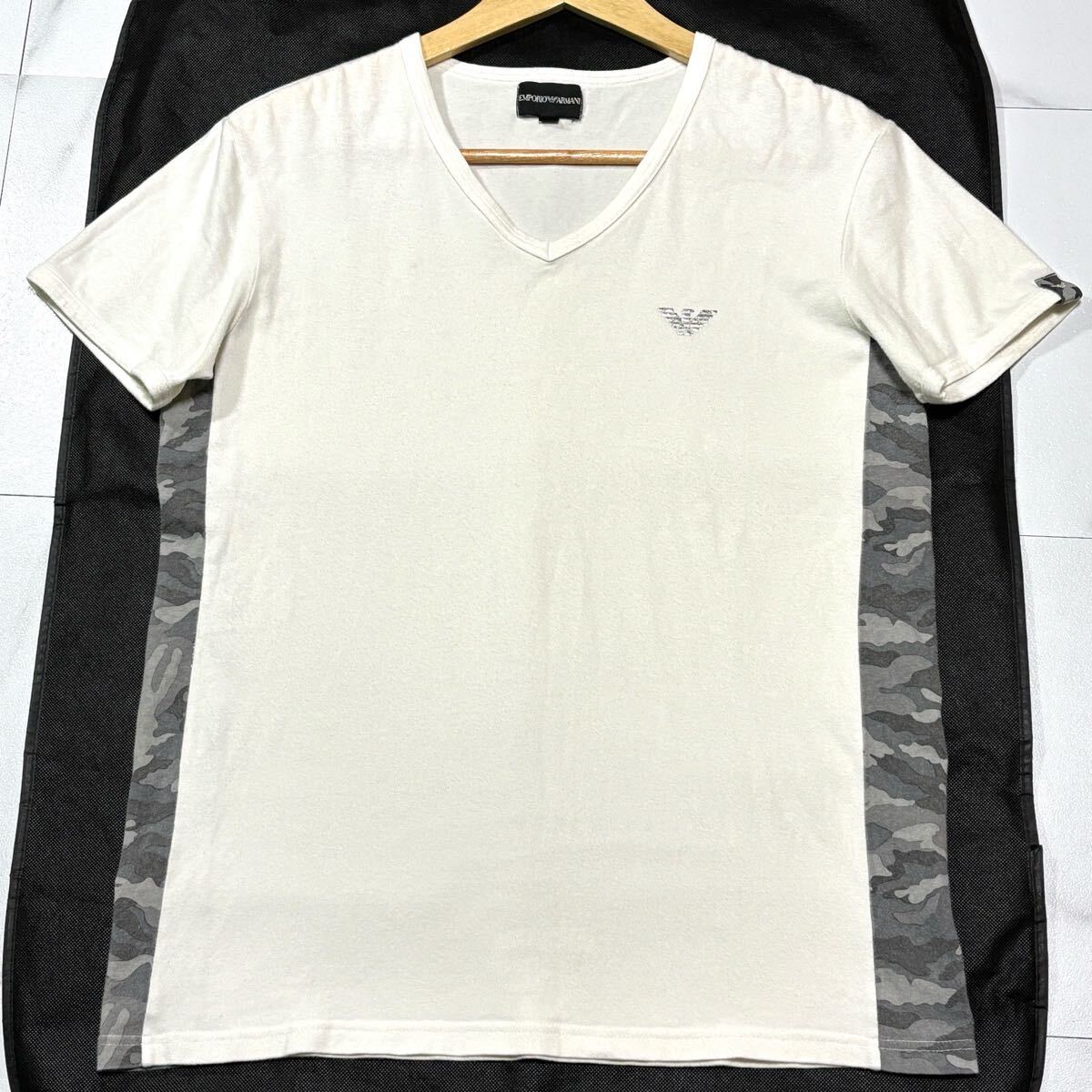 美品/ XLサイズ EMPORIO ARMANI エンポリオアルマーニ Tシャツ 半袖 イーグルロゴ 迷彩 ホワイト 白