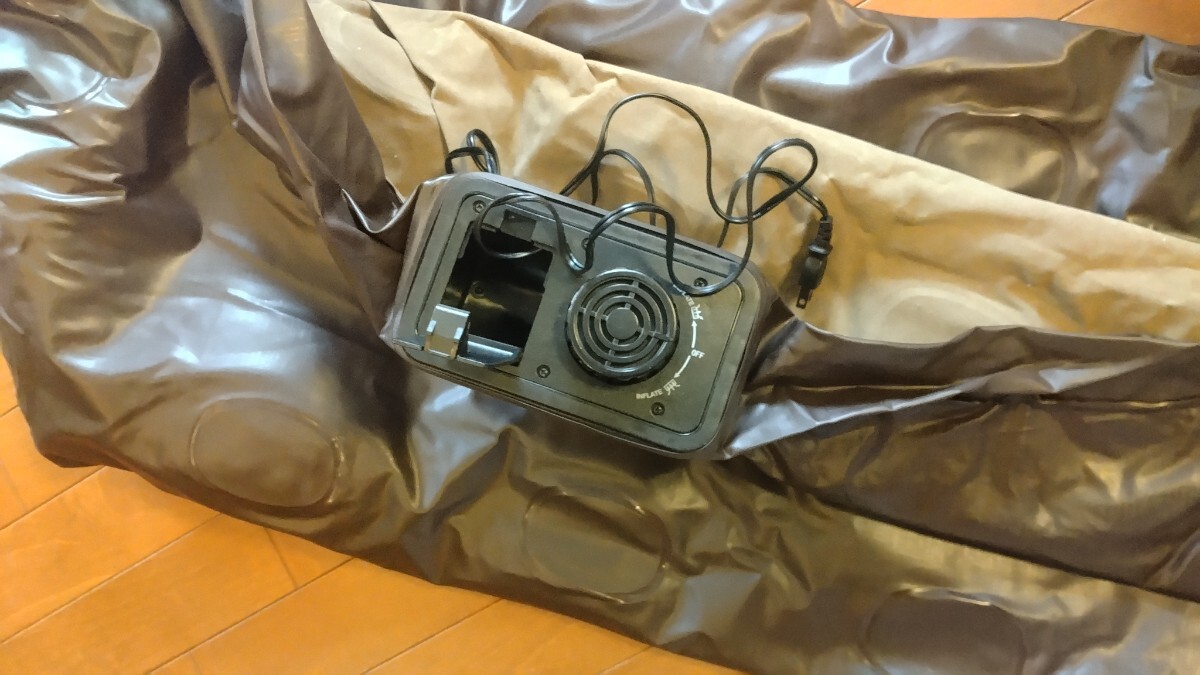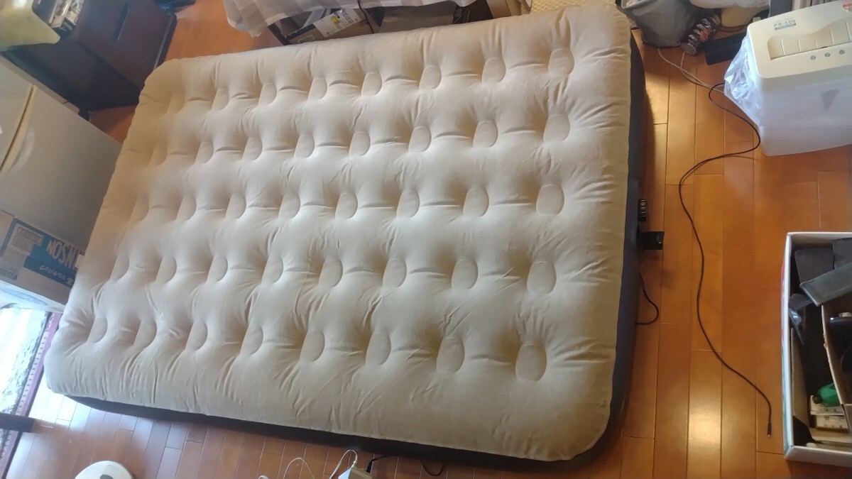 サイズはセミダブルで100Vで使える電動ポンプが内蔵されています。