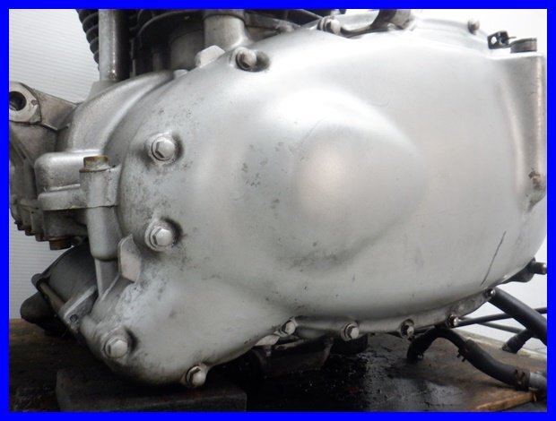 動画あり。実動。吹け良好。異音なし。5速リターン。 少しですが走行確認済み。特に問題なく走行出来ていました。 動画もありますのでご確認、ご判断お願いします。電圧 12.63~13.24V。圧縮は写真の通りです。 エキマニスタッドボルトに折れなし。目視でフィンに欠けなし。 シフトアーム辺りにオイル滲み、左右カバーに少し傷、左カバーに摩耗、少し塗装剥がれ、 セルモーター取付ボルトに固着あり。 セル付き。セル動作確認済み。汚れあり。要清掃。オイルを抜いて保管しています。 インシュレーター、スプロケットカバー、その他は別出品なので付属しません。 写真の物で全てです。台車は付属しません。