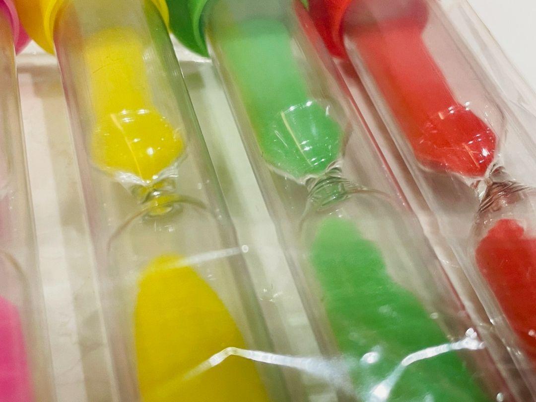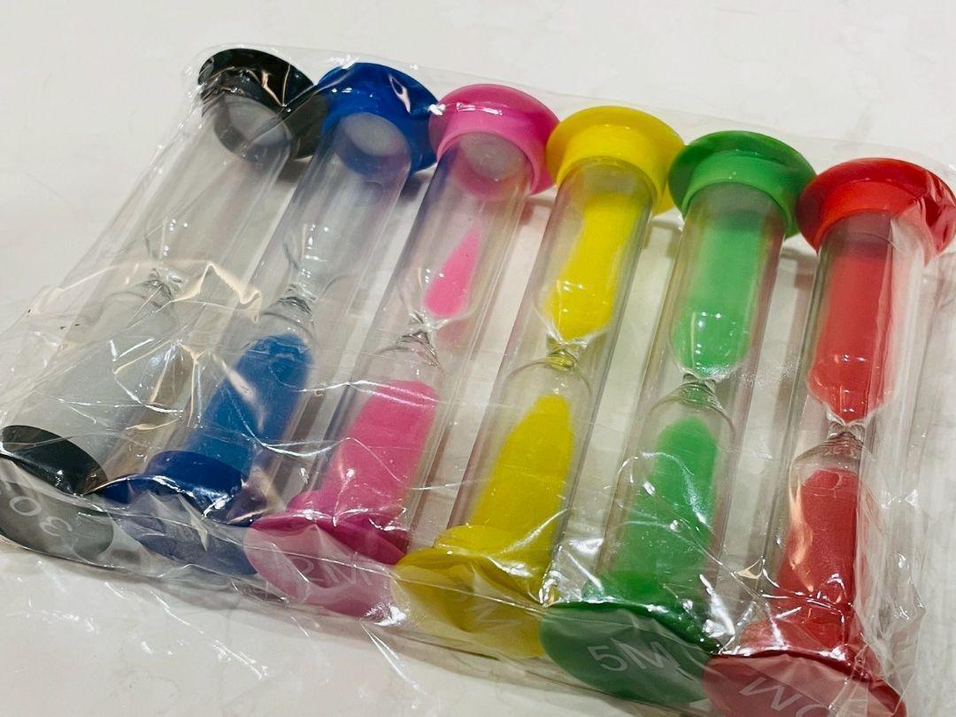 異なる時間を計れるカラフル 砂時計 タイマー 6個セットです。